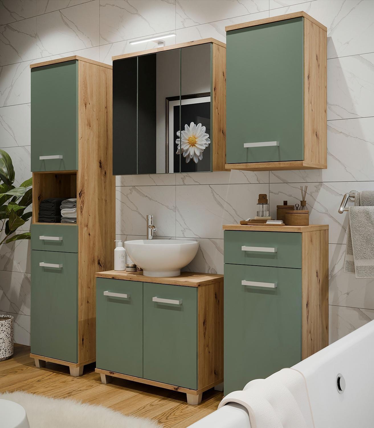 B 40 cm - 1 Tür - Artisan Eiche Dekor - Salbeigrün matt