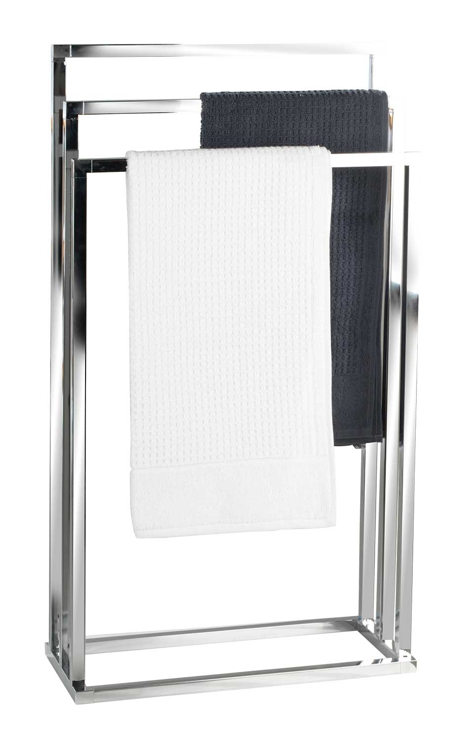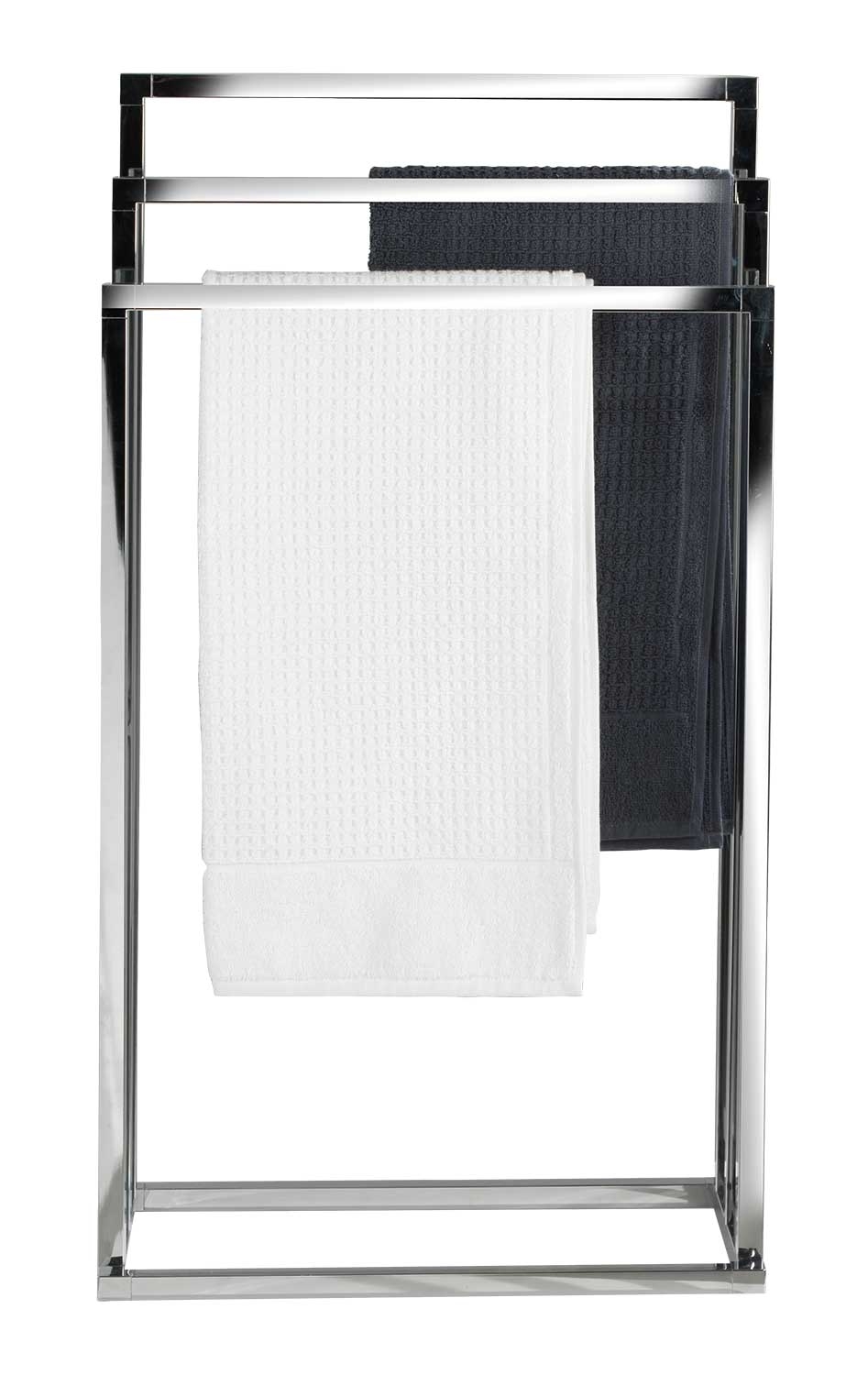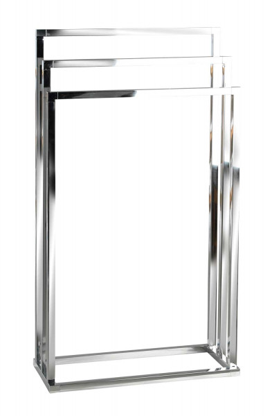 Der Handtuchhalter PRIAMO ist ein elegantes Badezimmeraccessoire in Chromfarben, das mit drei festen Haltern ausgestattet ist. Diese bieten ausreichend Platz zum Aufhängen und Trocknen von Badetüchern. Mit einer Breite von 49 cm, einer Höhe von 82 cm und einer Tiefe von 20 cm fügt sich der Handtuchhalter nahtlos in jedes Badezimmer ein. Der Handtuchständer ist nicht nur funktional, sondern auch ein stilvolles Element, das Ihrem Badezimmer eine moderne Note verleiht.