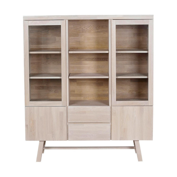 130 x 150 cm - 2 Türen - 2 Schubladen - Weiß - Glas - Eiche massiv geölt
