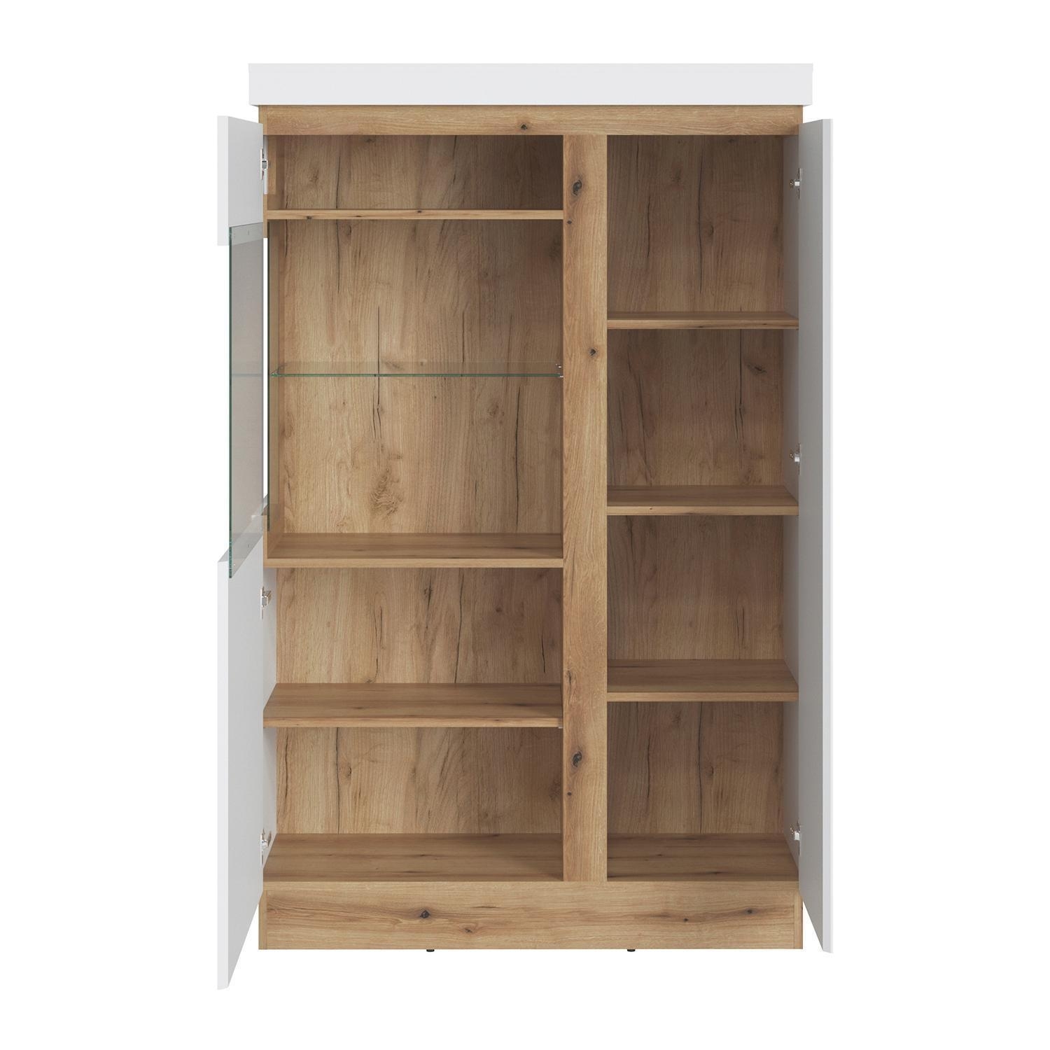 | Lieferumfang: | 1 Highboard mit 2 Türen, 6 Einlegeböden und 1 Glasboden. Eine Beleuchtung ist nicht enthalten |