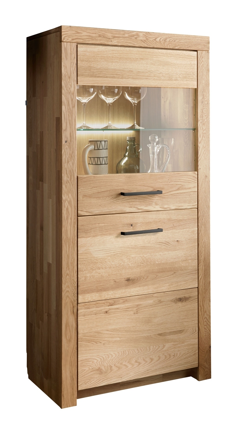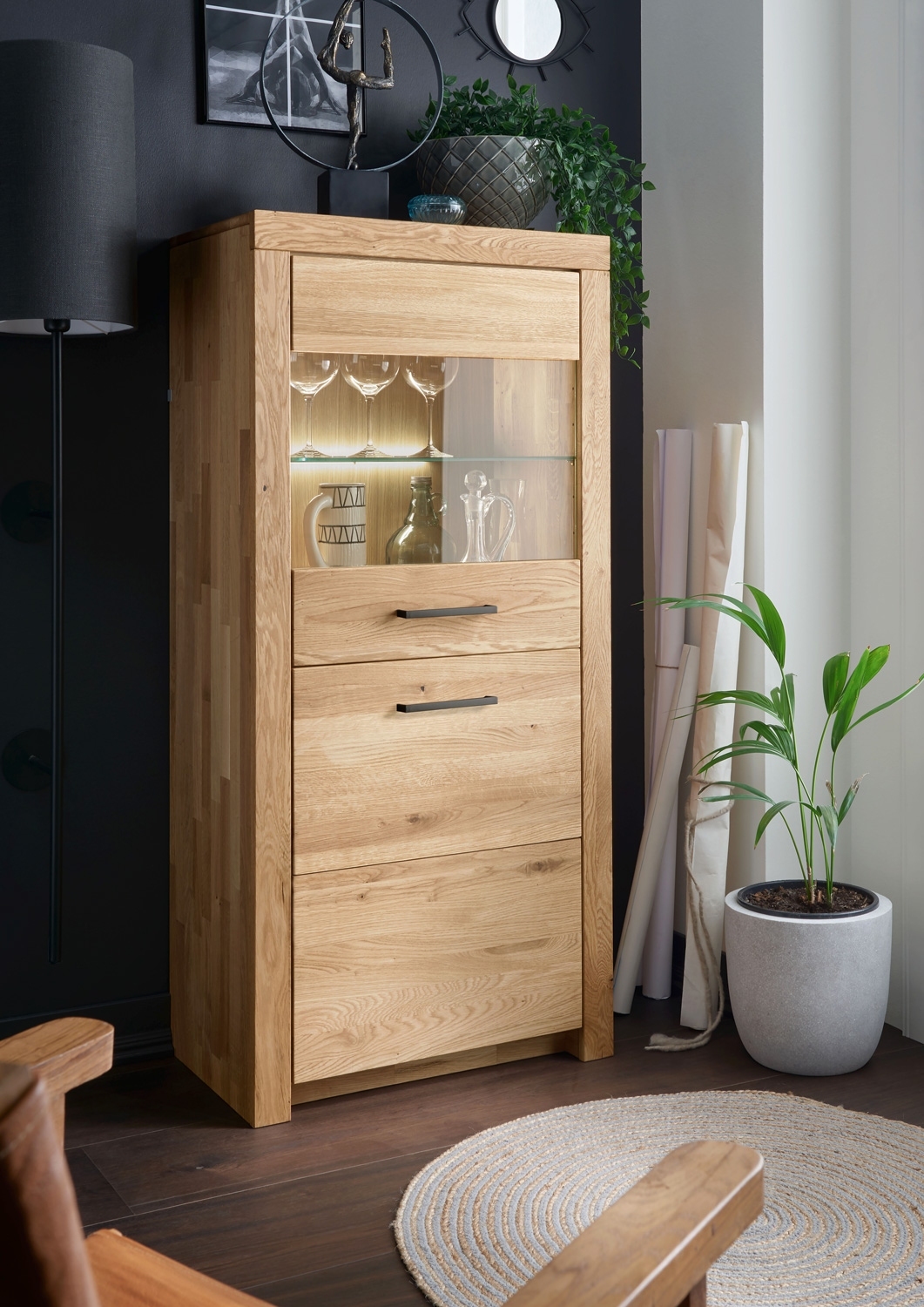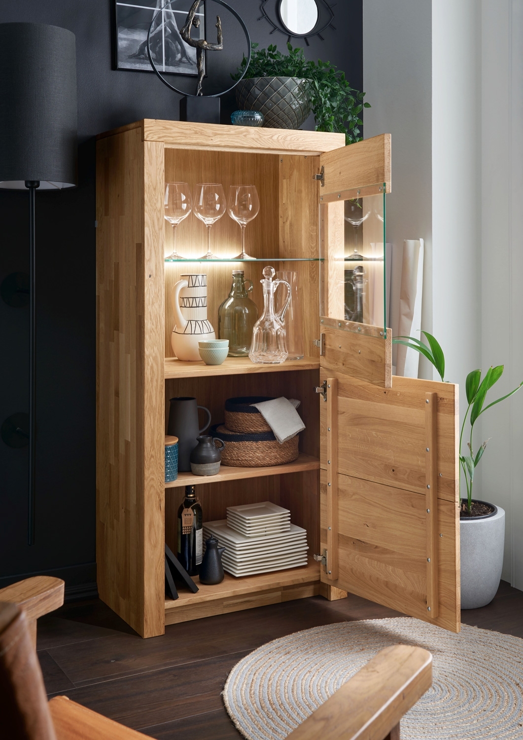 Wildeiche massiv geölt - B 65 cm - 1 Glas- und 1 Holztür