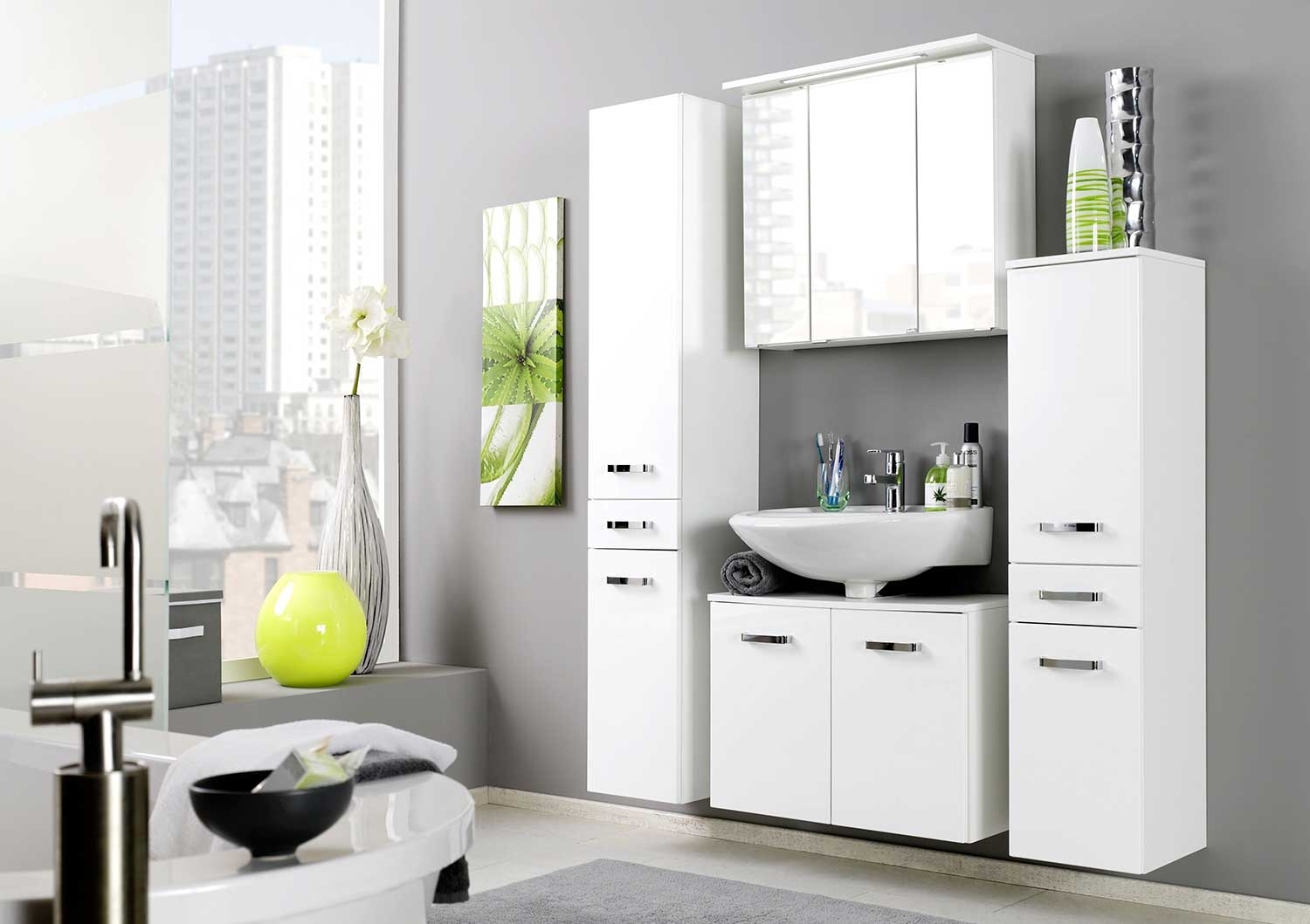 Weiß Hochglanz - B 30 cm - 2 Türen - 1 Schublade