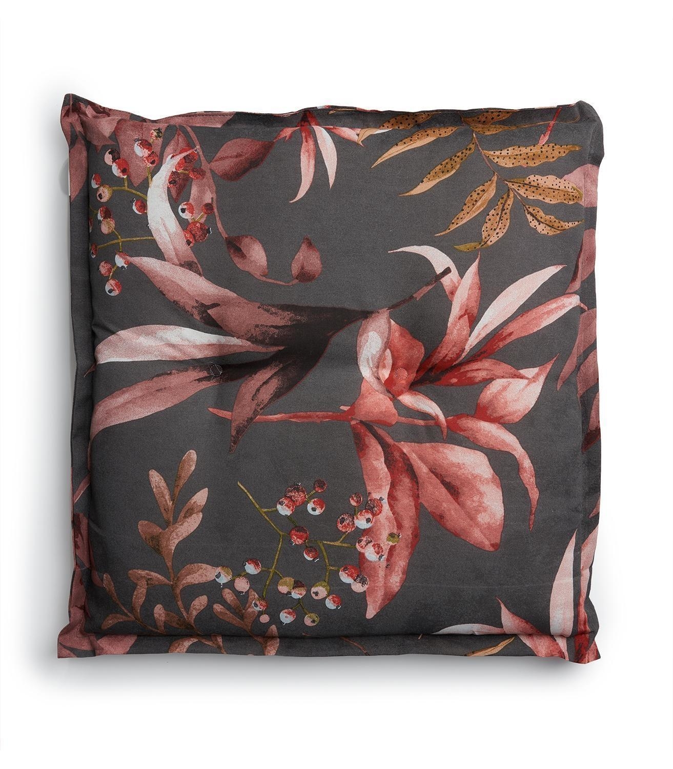 50 x 50 cm - Anthrazit - Rot - Blütenmuster