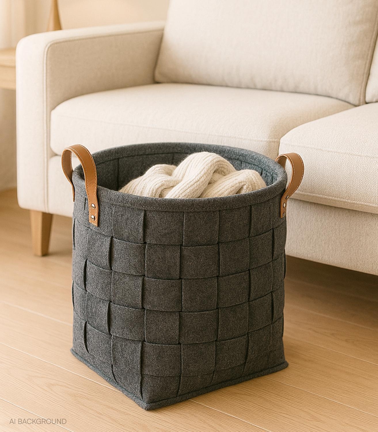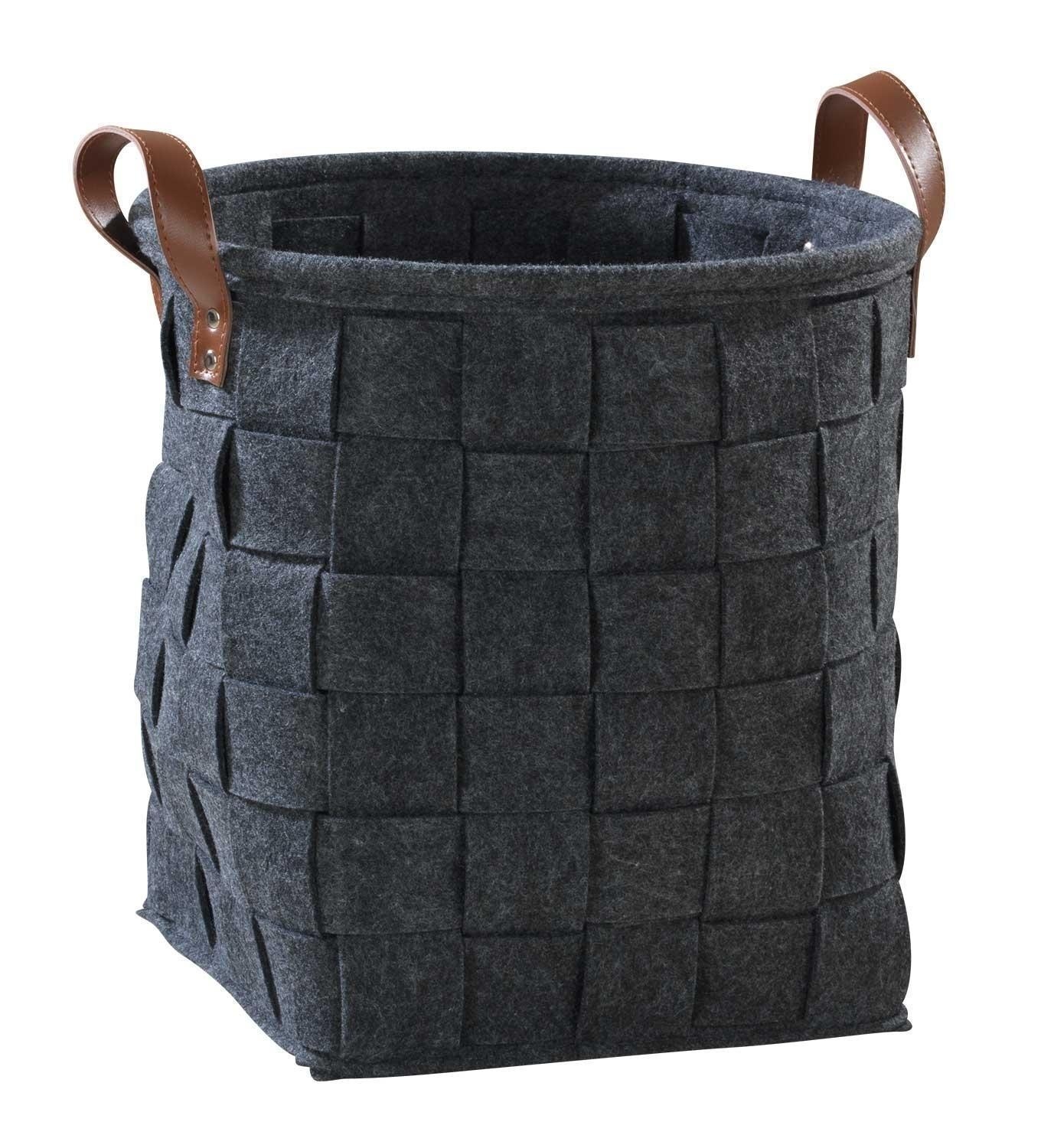Der Aufbewahrungskorb DEMBA der Marke Home4You überzeugt durch sein stilvolles Design in dunkelgrauem Filzgeflecht. Mit praktischen Tragegriffen ausgestattet, ist er vielseitig einsetzbar und eignet sich perfekt zur Aufbewahrung von Spielzeug, Zeitschriften und vielem mehr. Seine Maße betragen 27 cm in der Breite, 35 cm in der Höhe und 27 cm in der Tiefe, was ihn zu einem kompakten und dennoch geräumigen Ordnungshelfer macht.