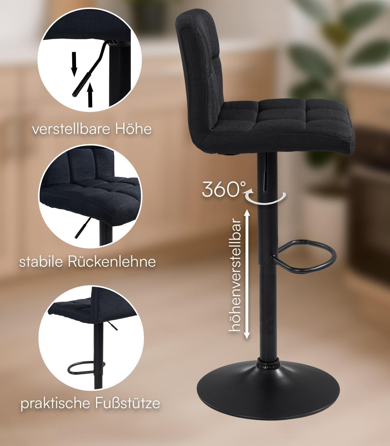 - Barhocker mit Webstoffbezug in Schwarz