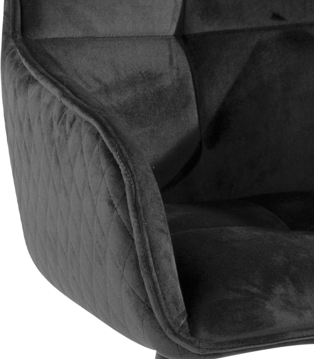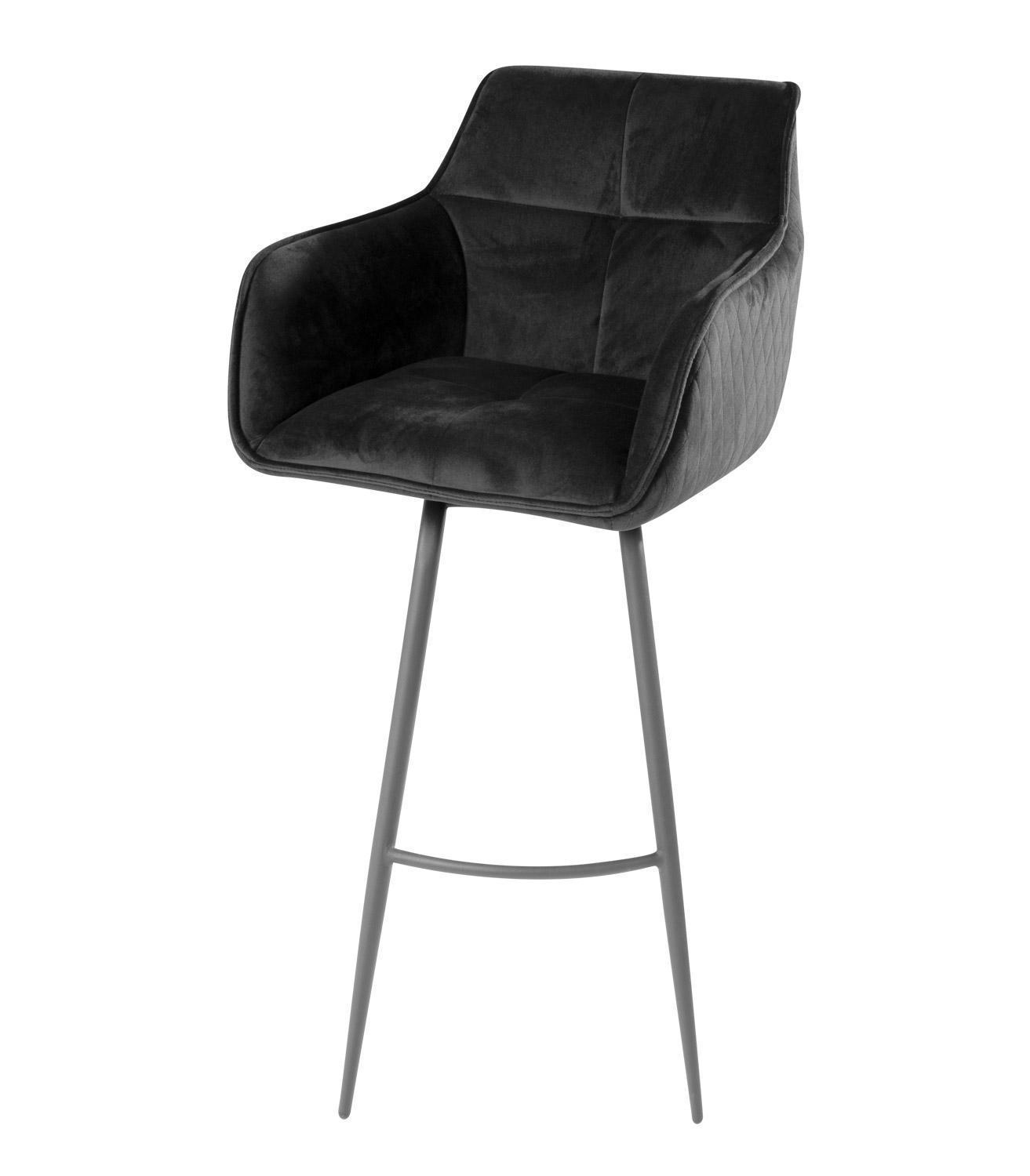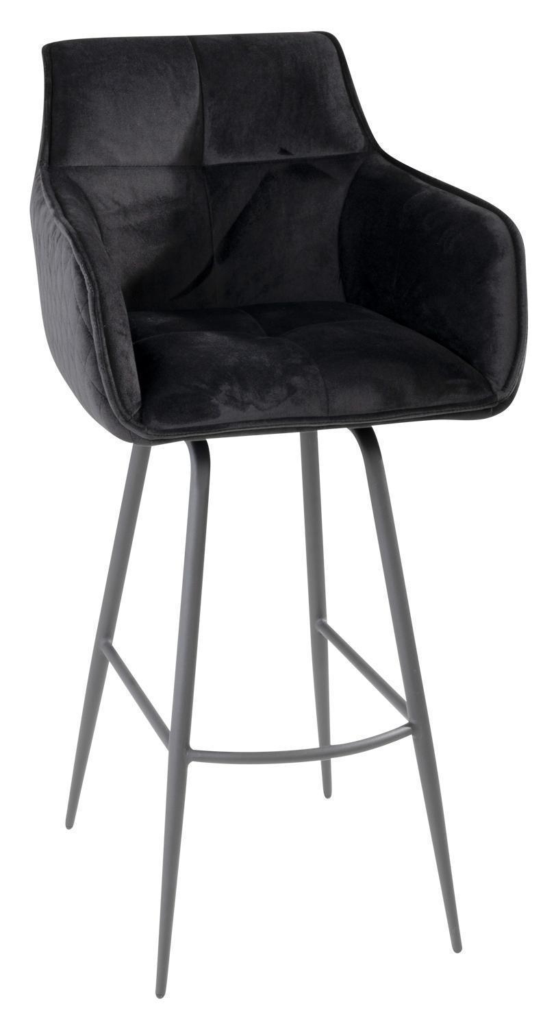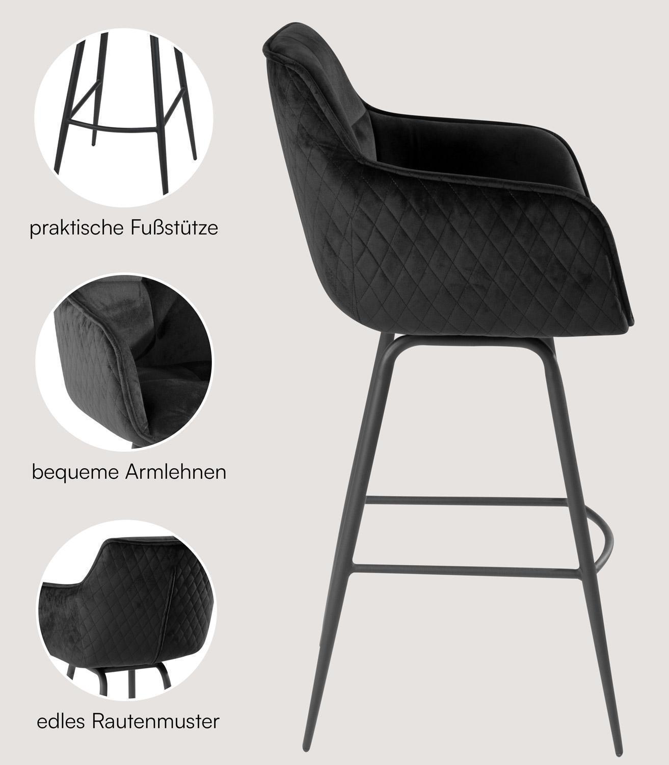 Der Barhocker JORIS von Home4You vereint stilvolles Design und hohen Komfort. Mit seinem eleganten schwarzen Samtbezug und einem stabilen Metallgestell in Schwarz ist er ein echter Hingucker. Die bequemen Armlehnen und die praktische Fußablage sorgen für zusätzlichen Sitzkomfort. Der Hocker ist 360 Grad drehbar ohne Rückstellfunktion, was Flexibilität ermöglicht. Mit einer Breite von 55 cm, einer Höhe von 106 cm und einer Tiefe von 50 cm bietet er ausreichend Platz. Die maximale Belastbarkeit liegt bei 120 kg.