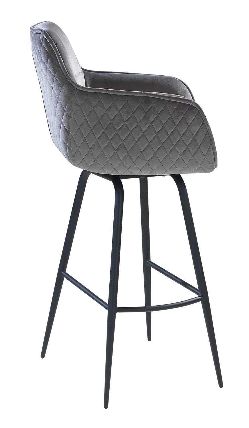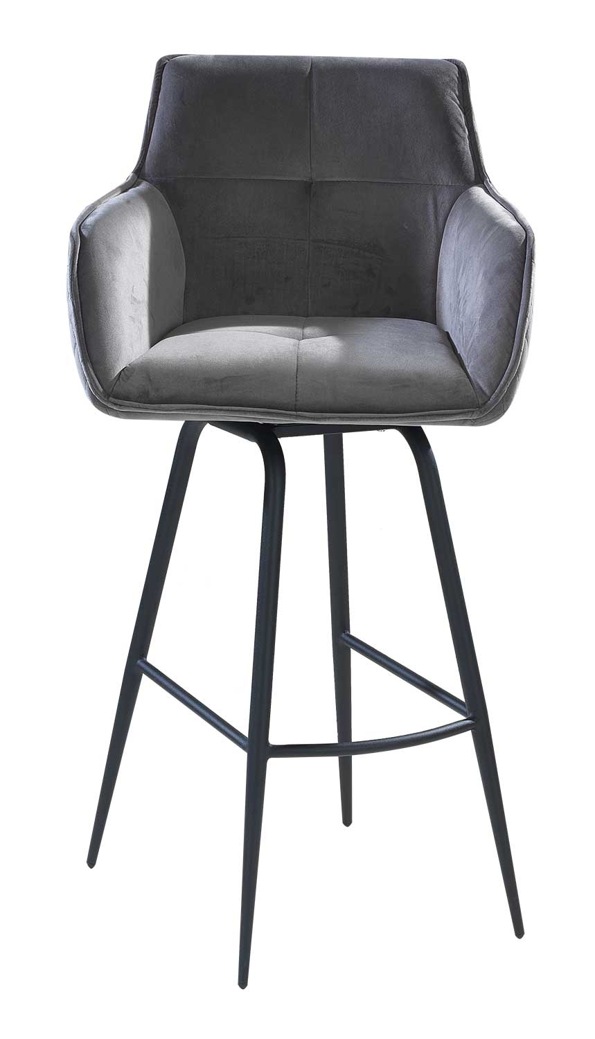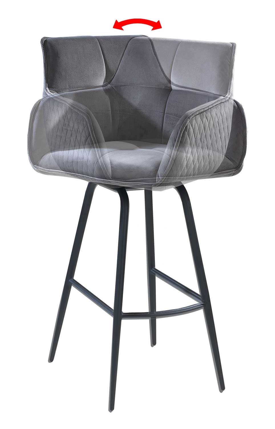 Der Barhocker JORIS von Home4You vereint stilvolles Design und hohen Komfort. Mit seinem eleganten schwarzen Samtbezug und einem stabilen Metallgestell in Schwarz ist er ein echter Hingucker. Die bequemen Armlehnen und die praktische Fußablage sorgen für zusätzlichen Sitzkomfort. Der Hocker ist 360 Grad drehbar ohne Rückstellfunktion, was Flexibilität ermöglicht. Mit einer Breite von 55 cm, einer Höhe von 106 cm und einer Tiefe von 50 cm bietet er ausreichend Platz. Die maximale Belastbarkeit liegt bei 120 kg.