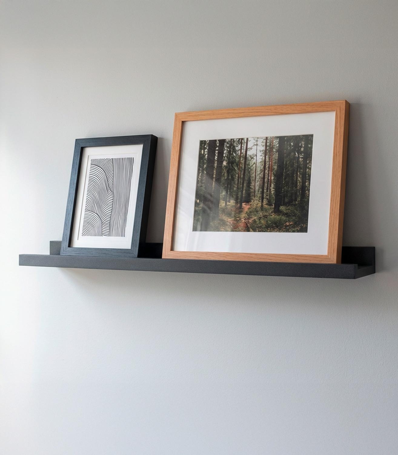 Die Bilderleiste ENZO von Home4You ist eine stilvolle Lösung zur Präsentation von Fotos, Postkarten oder kleinen Dekorationen. In Schwarz matt gehalten und aus MDF und PVC gefertigt, fügt sie sich harmonisch in verschiedene Wohnstile ein. Mit einer Größe von 60 x 10 cm bietet sie ausreichend Platz für schöne Motive und Erinnerungsstücke. Die Leiste ist bis 5 kg belastbar und eignet sich ideal für Wandgestaltung mit persönlicher Note.