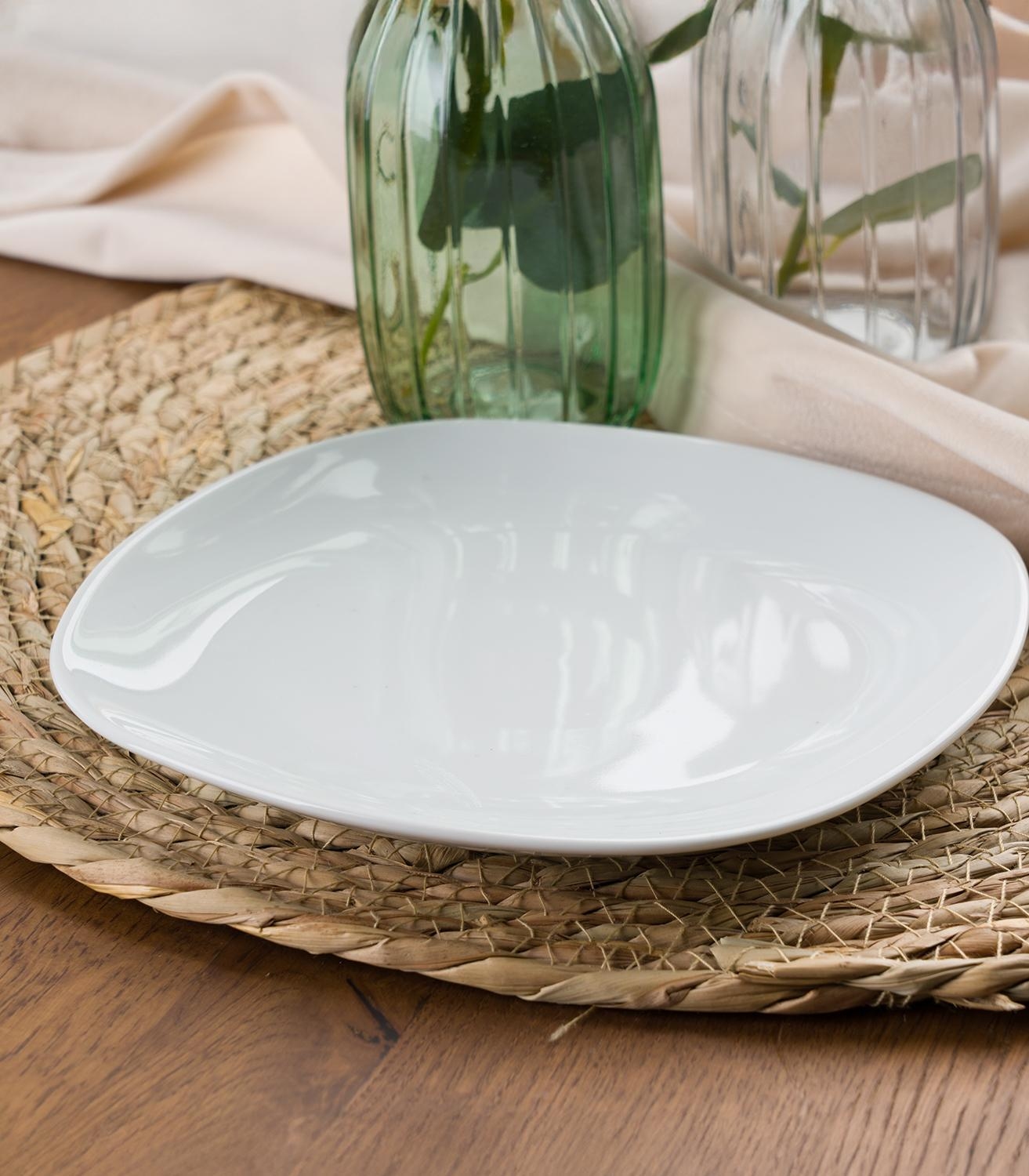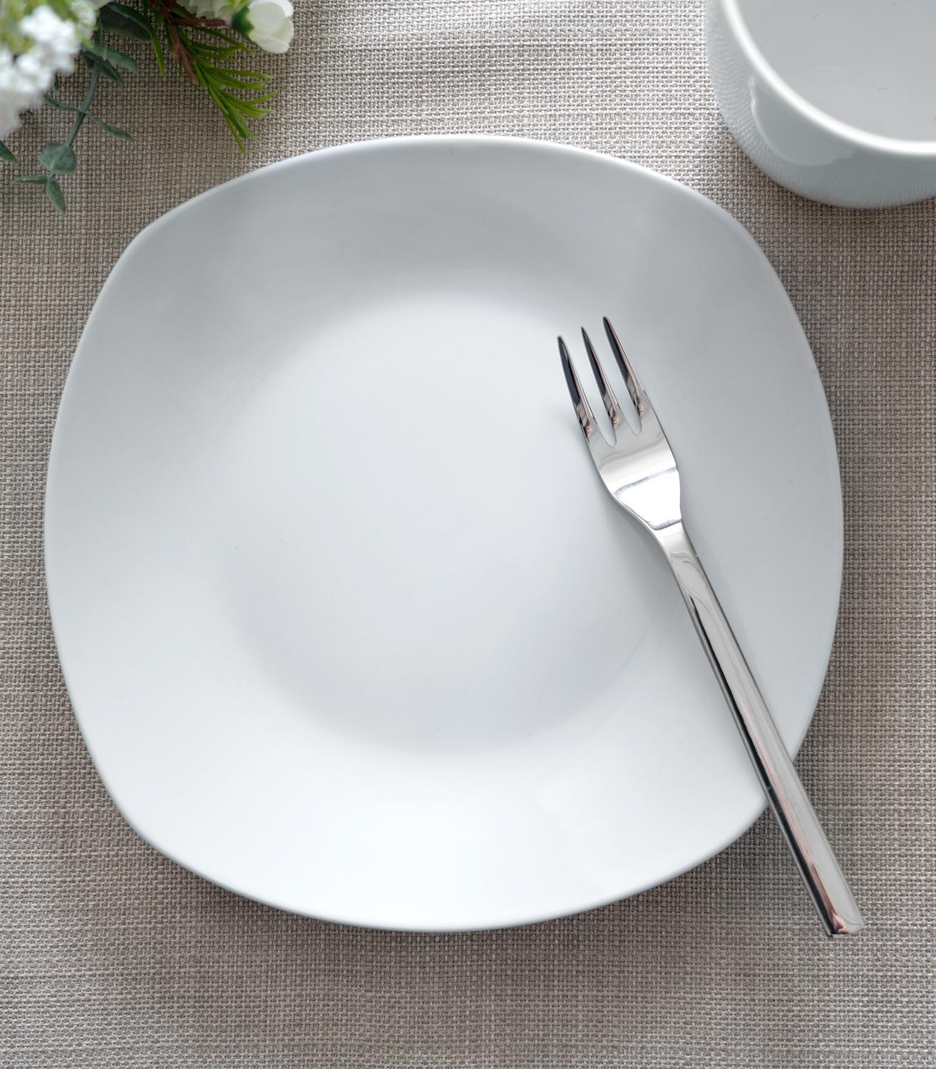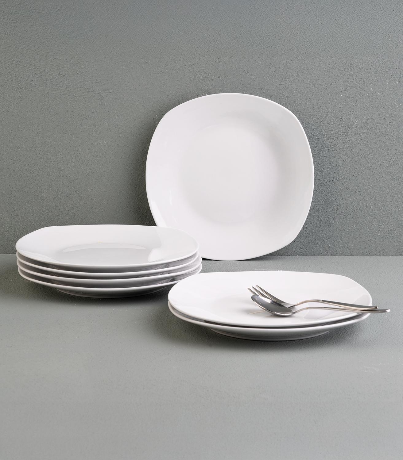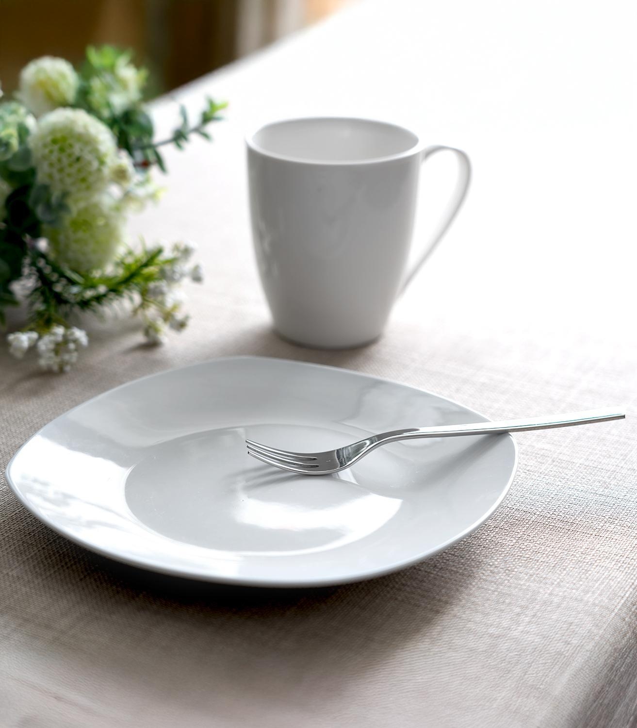 Der Dessertteller der Marke Home4You präsentiert sich in strahlendem Weiß und besticht durch seine eckige Form. Mit einer großzügigen Größe von 19,5 x 19,5 cm bietet dieser Teller aus hochwertigem Porzellan ausreichend Platz, um köstliche Desserts stilvoll zu präsentieren.