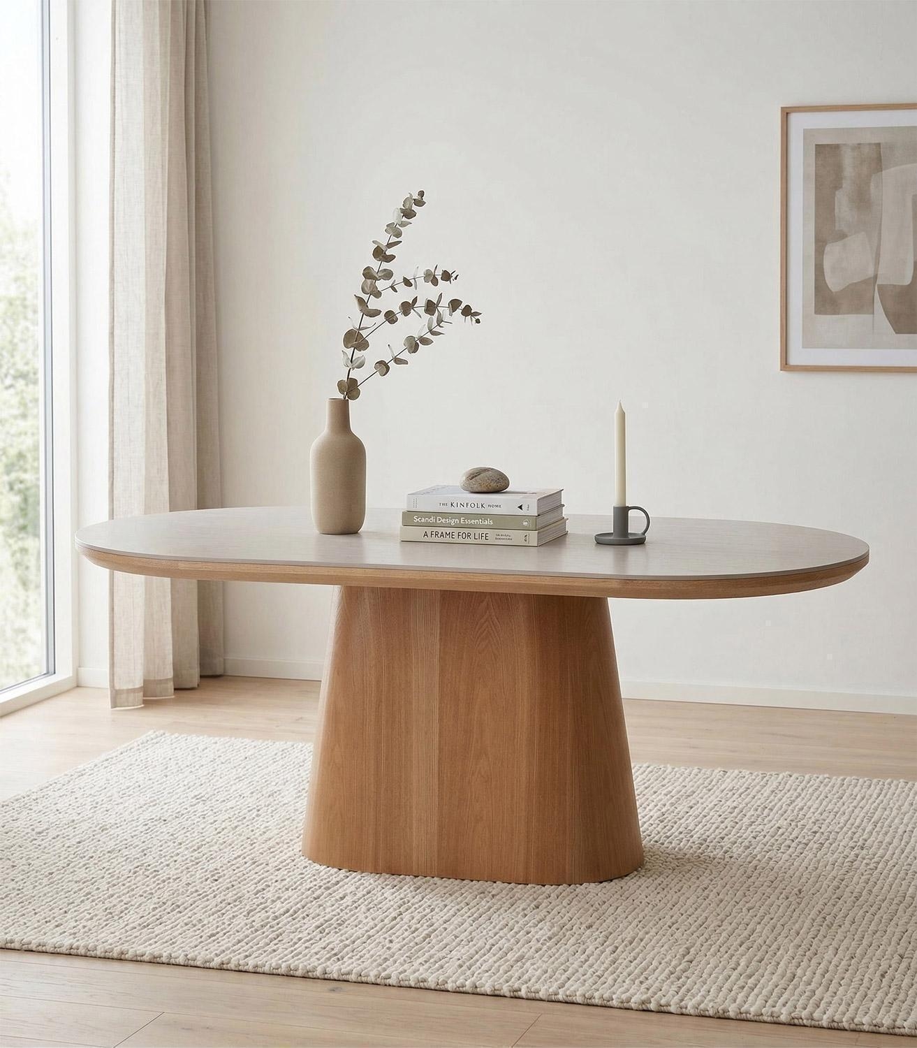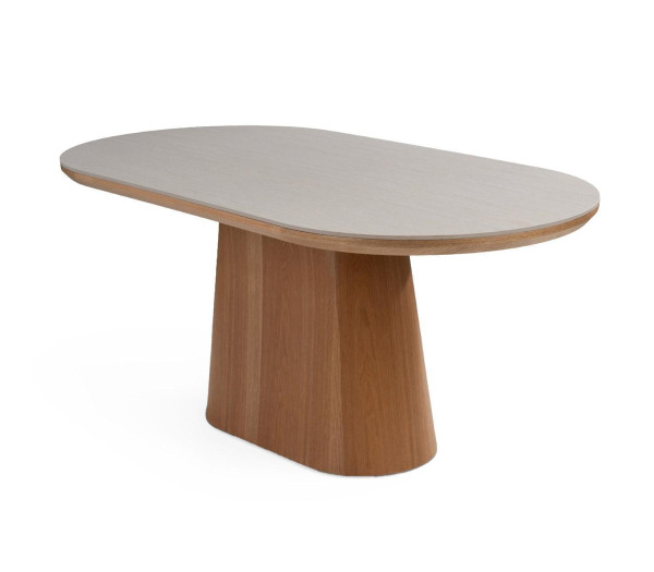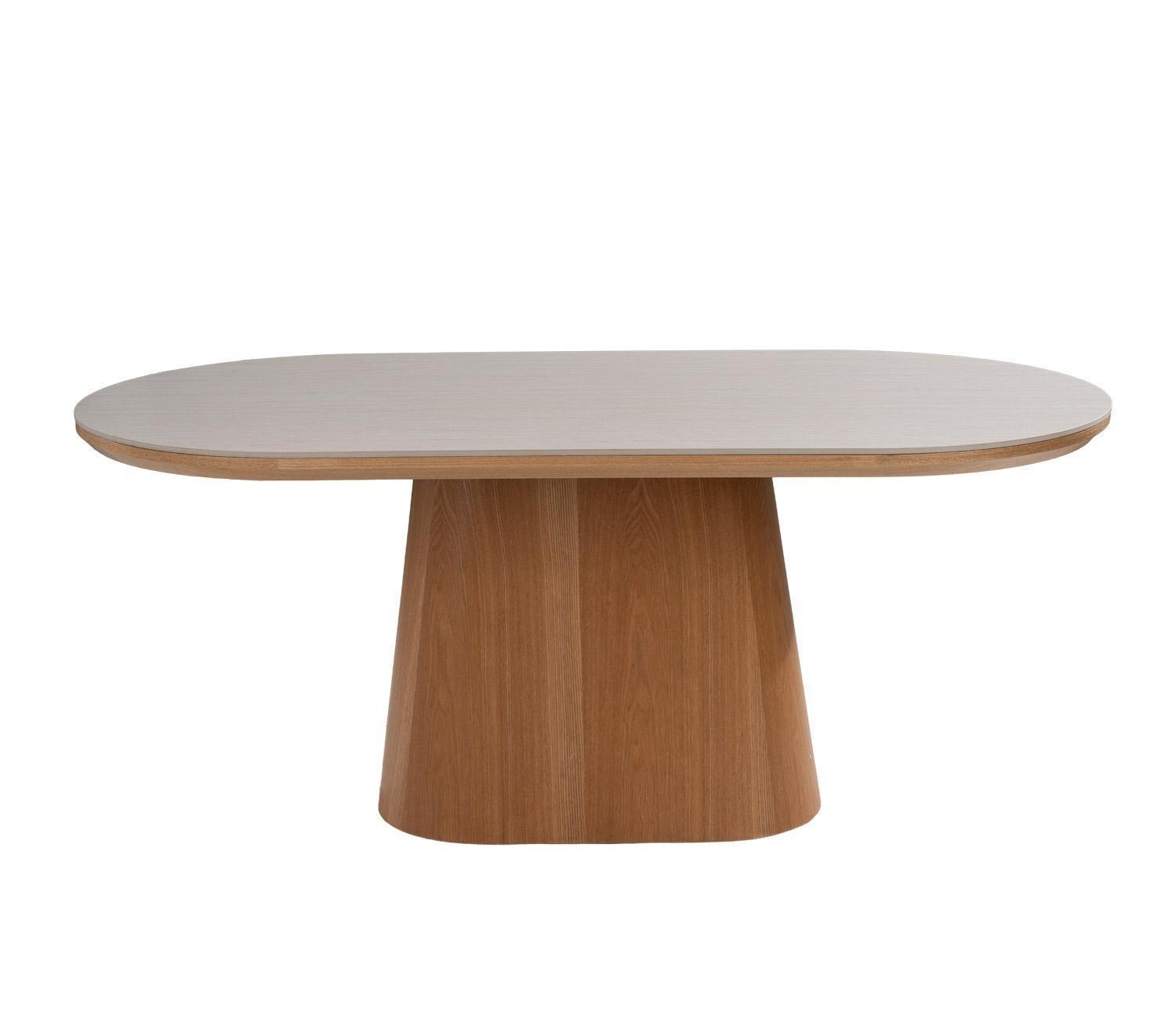 180 x 90 cm - Hellbraun - Weiß - MDF - travertine Keramikplatte - oval