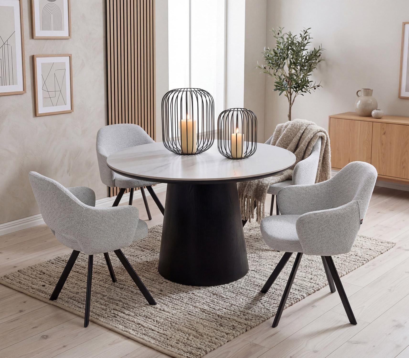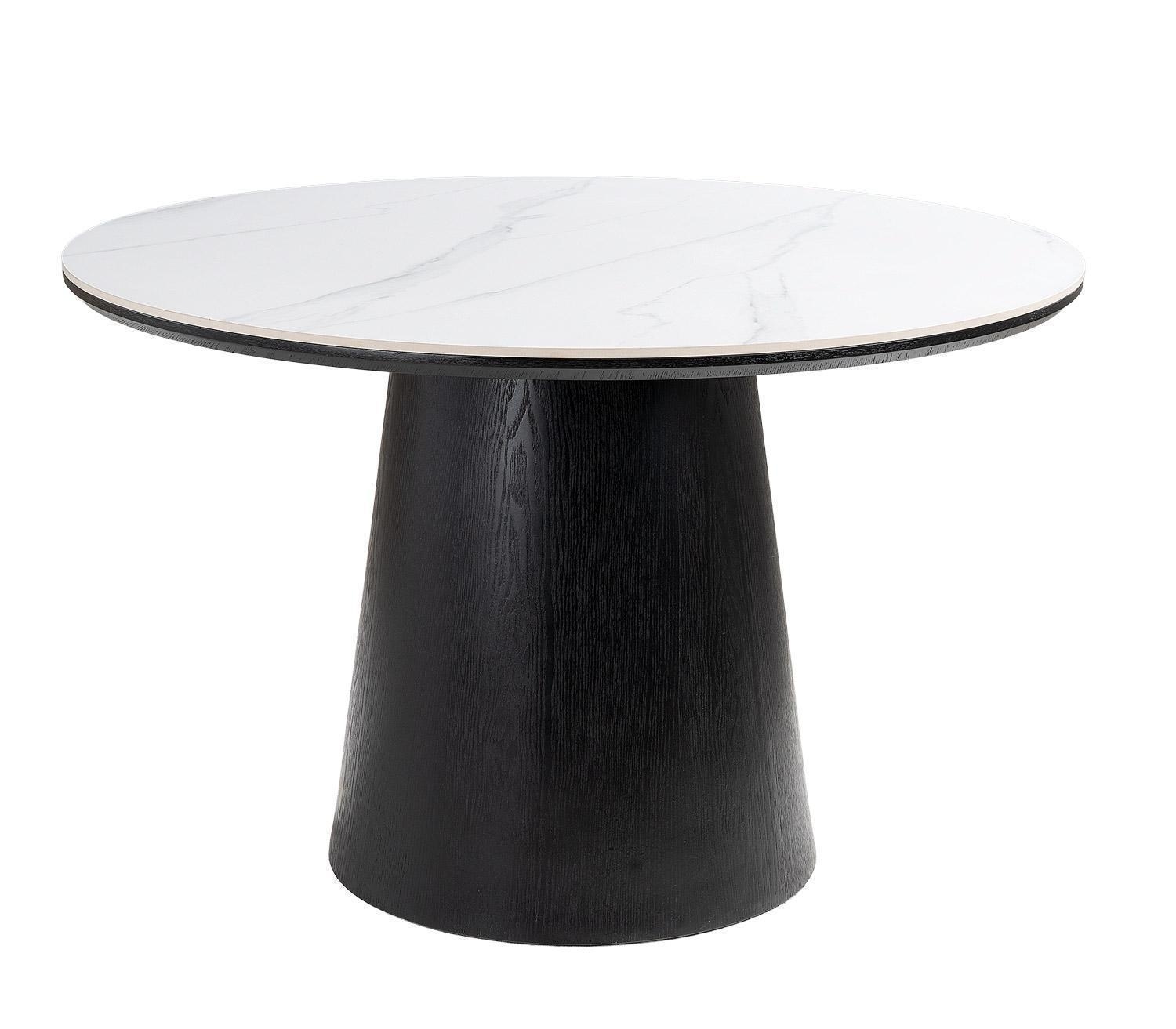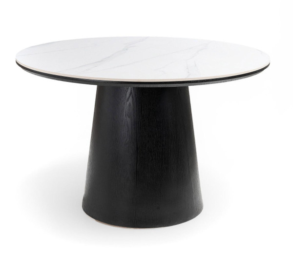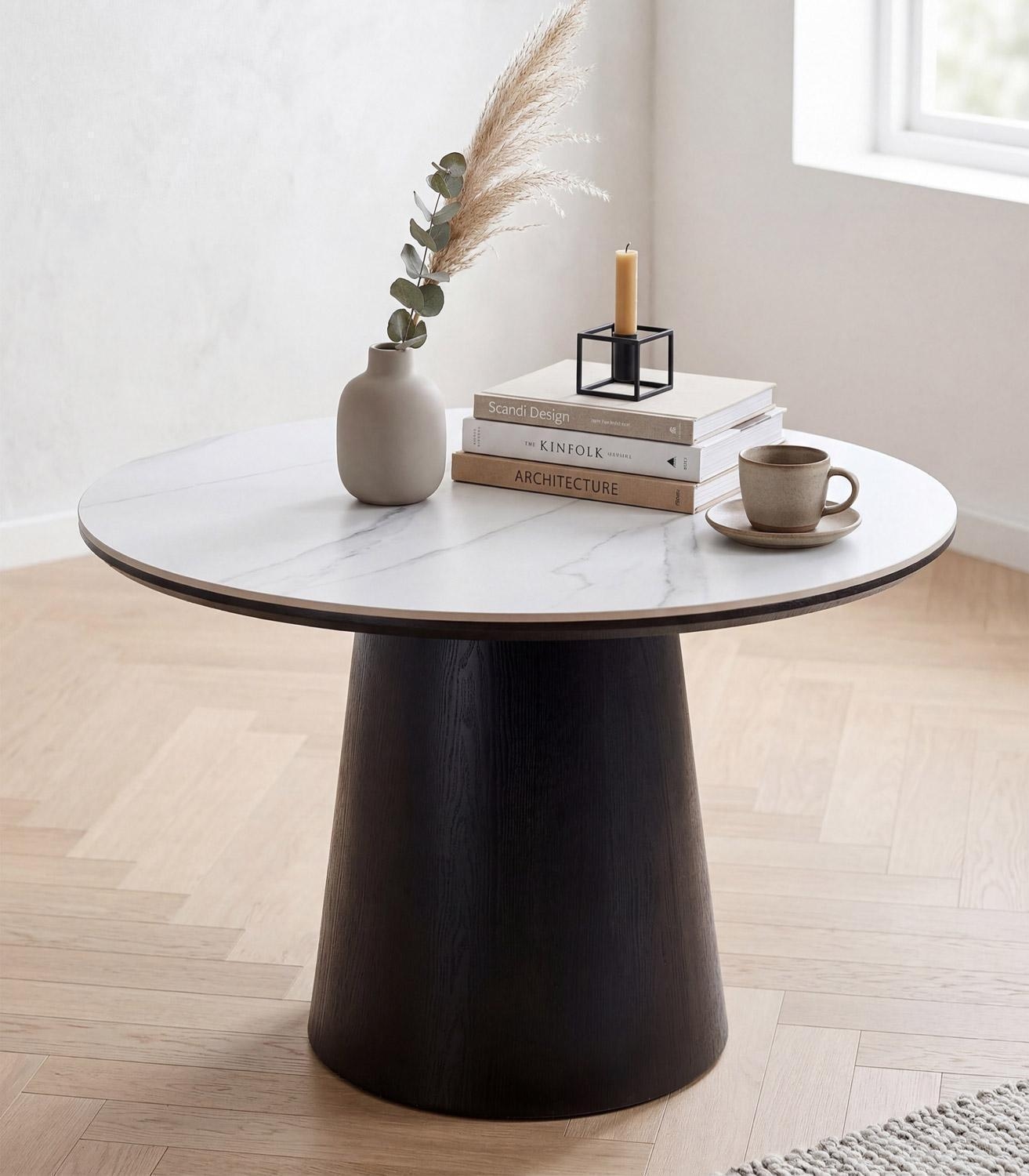 Ø 115 cm - Schwarz - Weiß - MDF - travertine Keramikplatte - rund