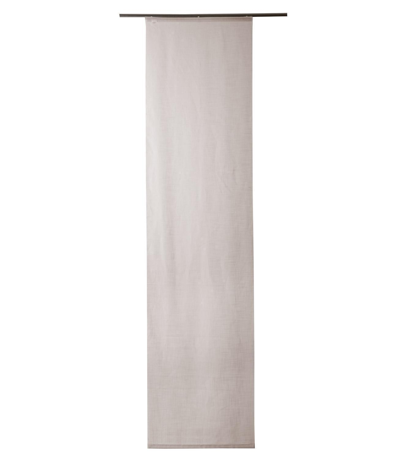 Der greigefarbene Flächenvorhang von Home4You schafft eine helle und freundliche Atmosphäre. Mit seiner Größe von 60 x 245 cm wirkt er modern und fügt sich perfekt in unterschiedlichste Wohnstile ein. Der halbtransparente Polyesterstoff lässt viel Tageslicht einfallen, bietet aber gleichzeitig eine angenehme Sichtschirmanmutung. Die passende Technik zur Befestigung ist bereits enthalten. Pflegeleicht: bei 60 °C waschbar und bügelgeeignet – ideal für stilvolle Fensterdekoration.