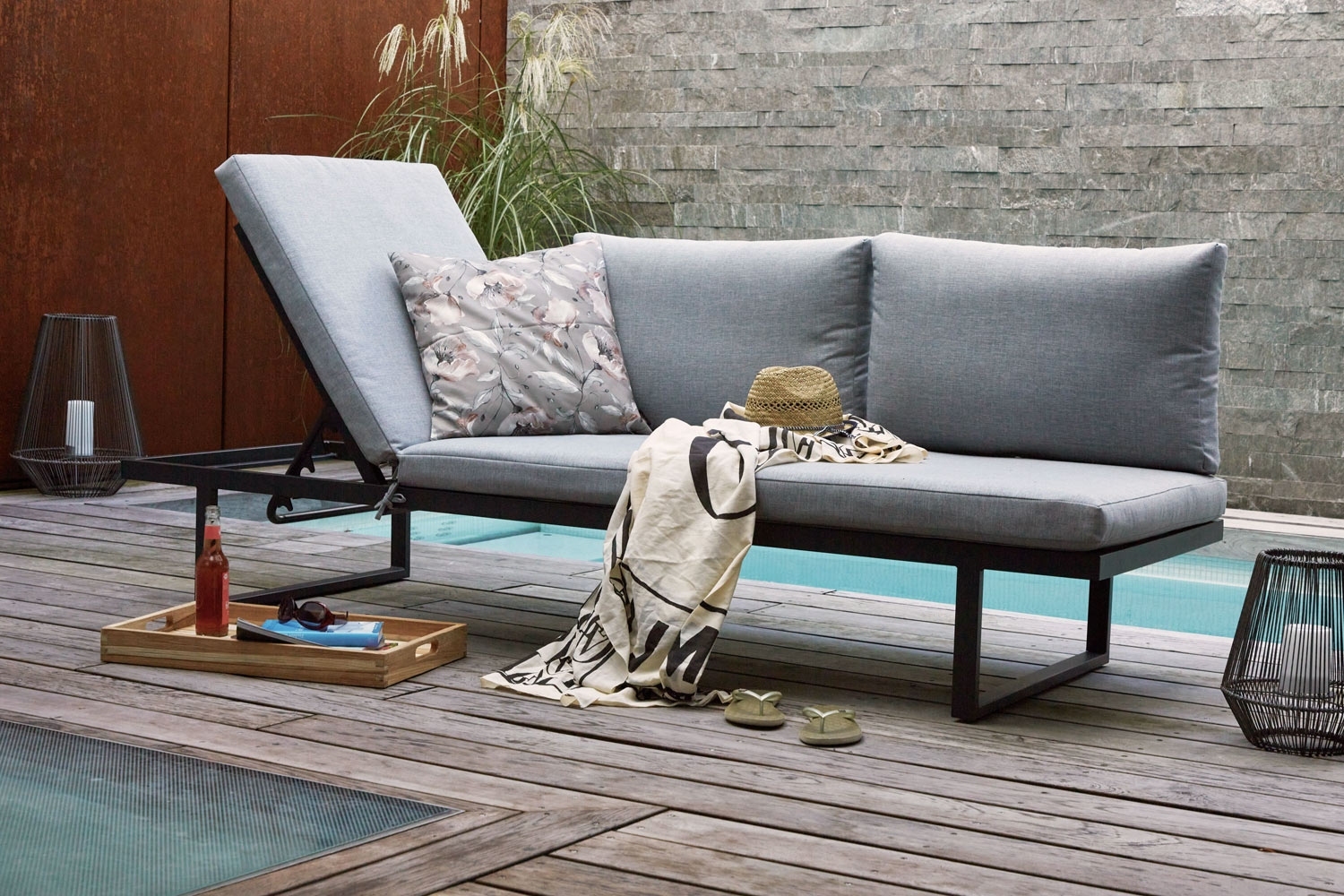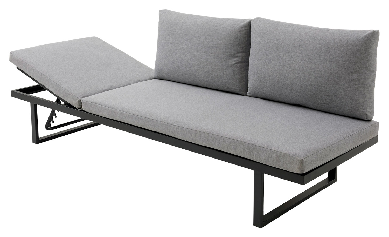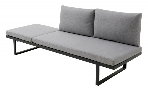 Die Lounge Gartenbank in dunkelgrau begeistert mit einem stabilen Aluminiumgestell und trotzt so jedem Wetter. Der Kissenbezug in hellgrau besteht aus Spunpoly-Schaum und ist ein strapazierfähiges Outdoor-Polyester. Diese Kissen sind daher sehr pflegeleicht und wasserabweisend. Für mehr Sicherheit sind die Auflagen mit seitlichen Kordeln ausgestattet um diese am Gestell zu befestigen.