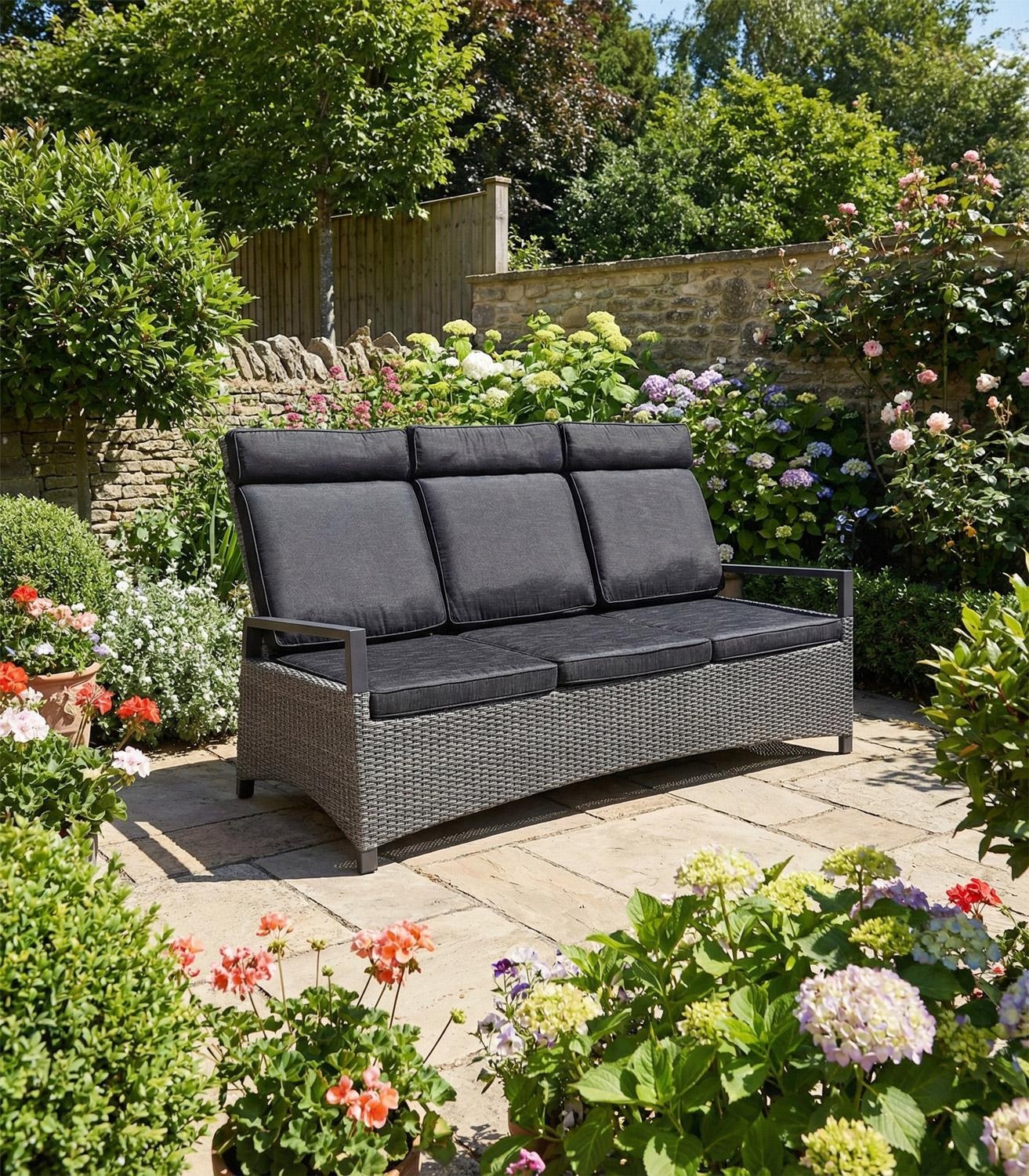 | Lieferumfang: | 1 Gartenbank mit verstellbaren Rückenlehnen, 3 Sitz- und 3 Rückenkissen |