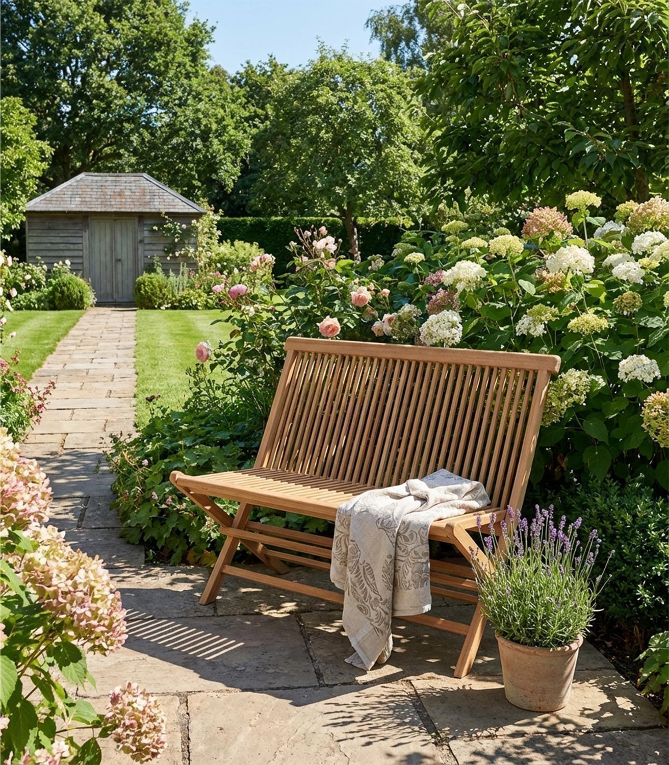 • Gartenbank aus massivem Teakholz