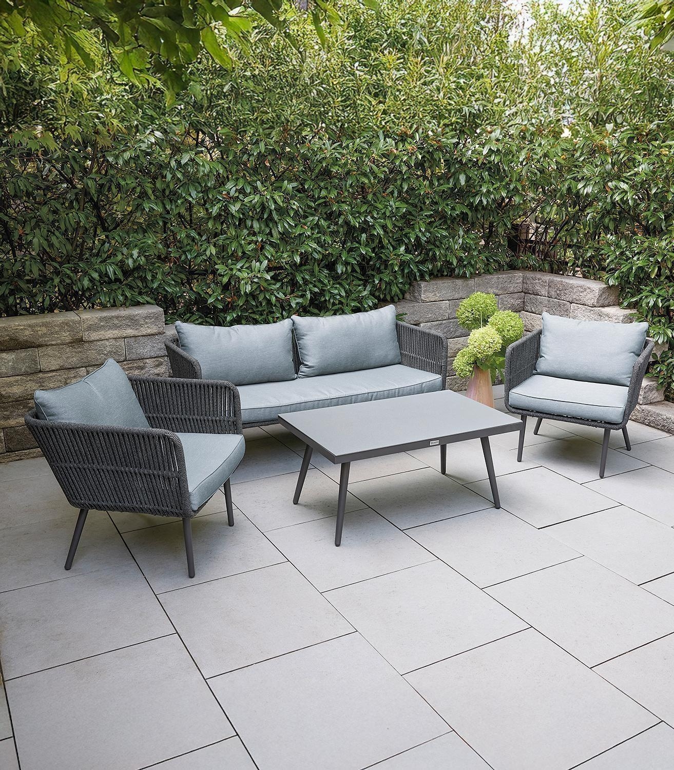 - 4-teiliges Gartenlounge-Set aus Stahl in Anthrazit