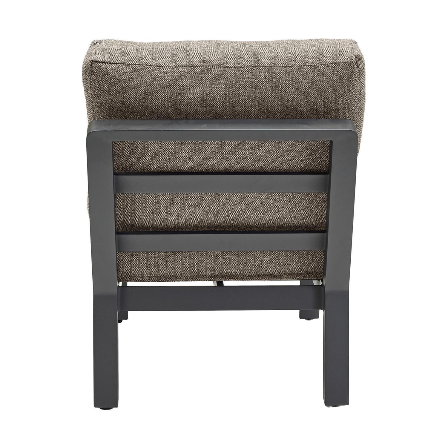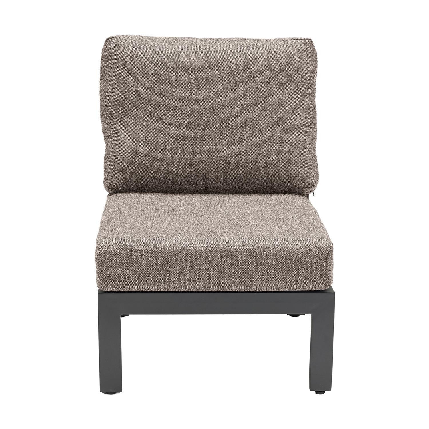 Das Gartenlounge-Mittelelement AVENA der Marke Home4You ist in der Farbe Anthrazit gestaltet und verfügt über ein stabiles Gestell aus Aluminium. Dieses Outdoor-Möbelstück ist mit Sitz- und Rückenkissen ausgestattet, die über Webstoffbezüge im Farbton Braun verfügen. Die Abmessungen dieser Sitzgelegenheit belaufen sich auf eine Breite von 63 cm, eine Höhe von 72 cm sowie eine Tiefe von 86 cm. Das Modul lässt sich flexibel als Einzelelement nutzen oder zur Erweiterung einer bestehenden Gartenlounge einsetzen.