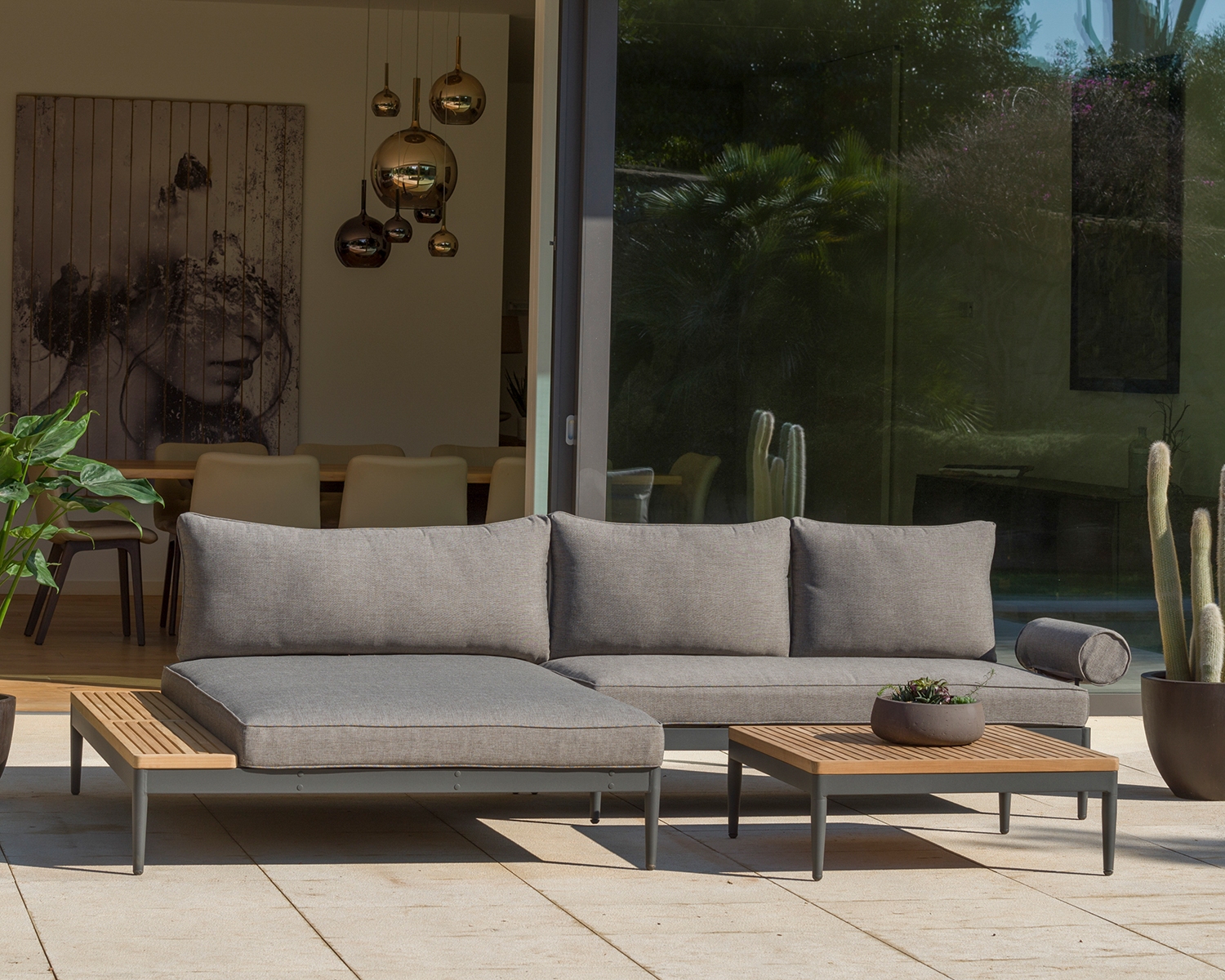 Die Ablage aus Teakholz ist robust und witterungsbeständig. Durch die natürlichen Öle im Holz ist die Ablage bereits gut geschützt und hat eine hohe Lebensdauer. Das Gestell aus Aluminium verbindet sehr geringes Gewicht mit Langlebigkeit, hoher Resistenz gegen Witterungseinflüsse und ist zudem leicht zu handhaben. Das rostfreie Aluminium erhält durch hochwertige Pulverbeschichtung ein edles Oberflächenfinish, welches es unempfindlich gegen Witterungseinflüsse und pflegeleicht macht.