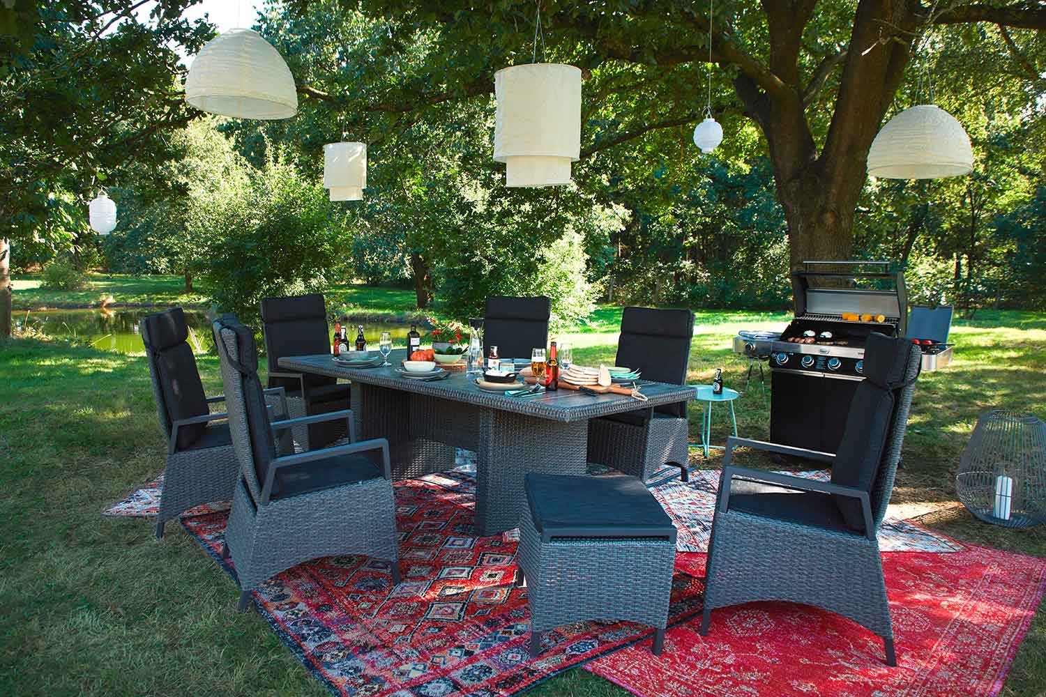 Grau - Anthrazit - Kunststoffgeflecht - mit Polster