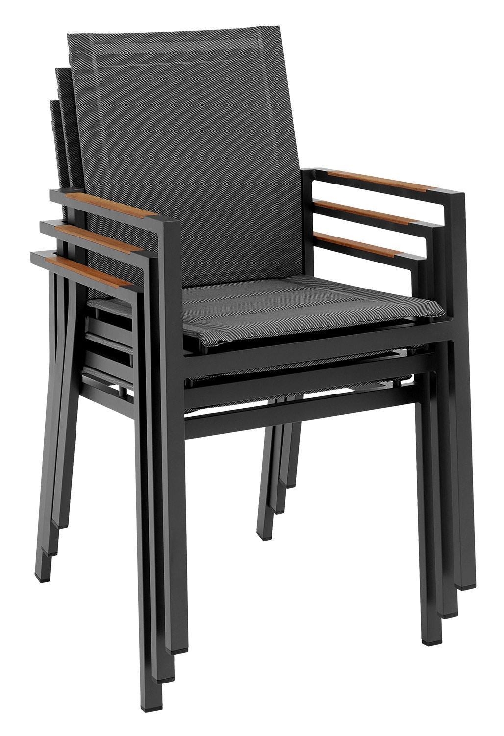 | Lieferumfang: | 1 stapelbarer Gartenstuhl mit eingelassenen Teakholzarmlehnen |