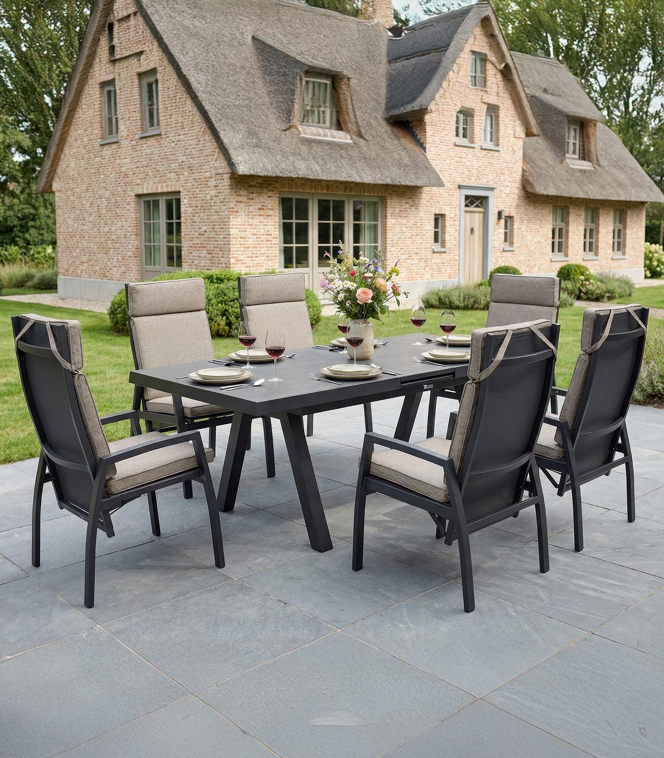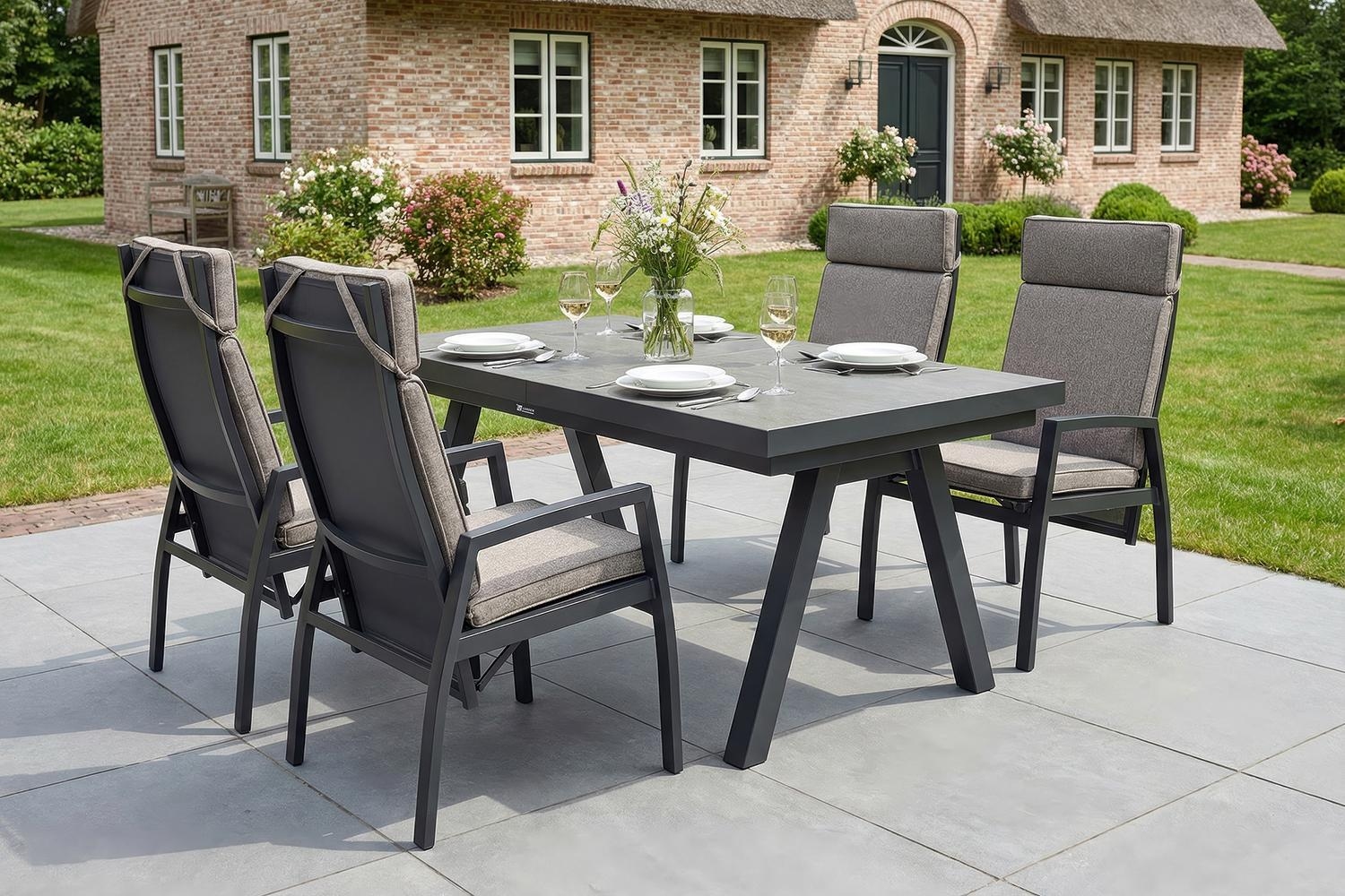 Anthrazit - Braun - Textilen - Aluminiumrahmen - mit Kissen - stapelbar