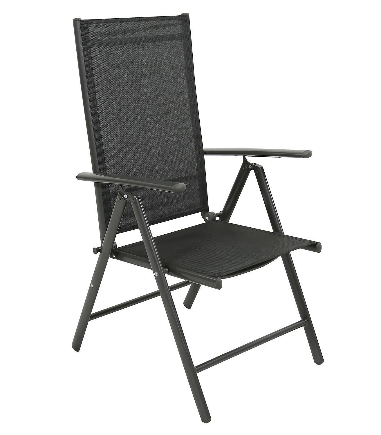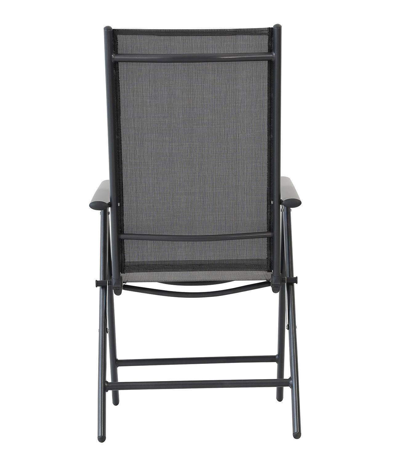Der Gartenstuhl DALLAS der Marke Home4You verfügt über ein anthrazitfarbenes Aluminiumgestell sowie eine Sitz- und Rückenlehne aus Textilen in Anthrazit. Dieser Klappstuhl weist eine Breite von 56 cm, eine Höhe von 107 cm und eine Tiefe von 67 cm auf. Zur Ausstattung gehört eine mehrfach verstellbare Rückenlehne, zudem ist diese Sitzgelegenheit platzsparend zusammenklappbar. Die maximale Belastbarkeit dieses Gartenmöbels liegt bei 120 kg.