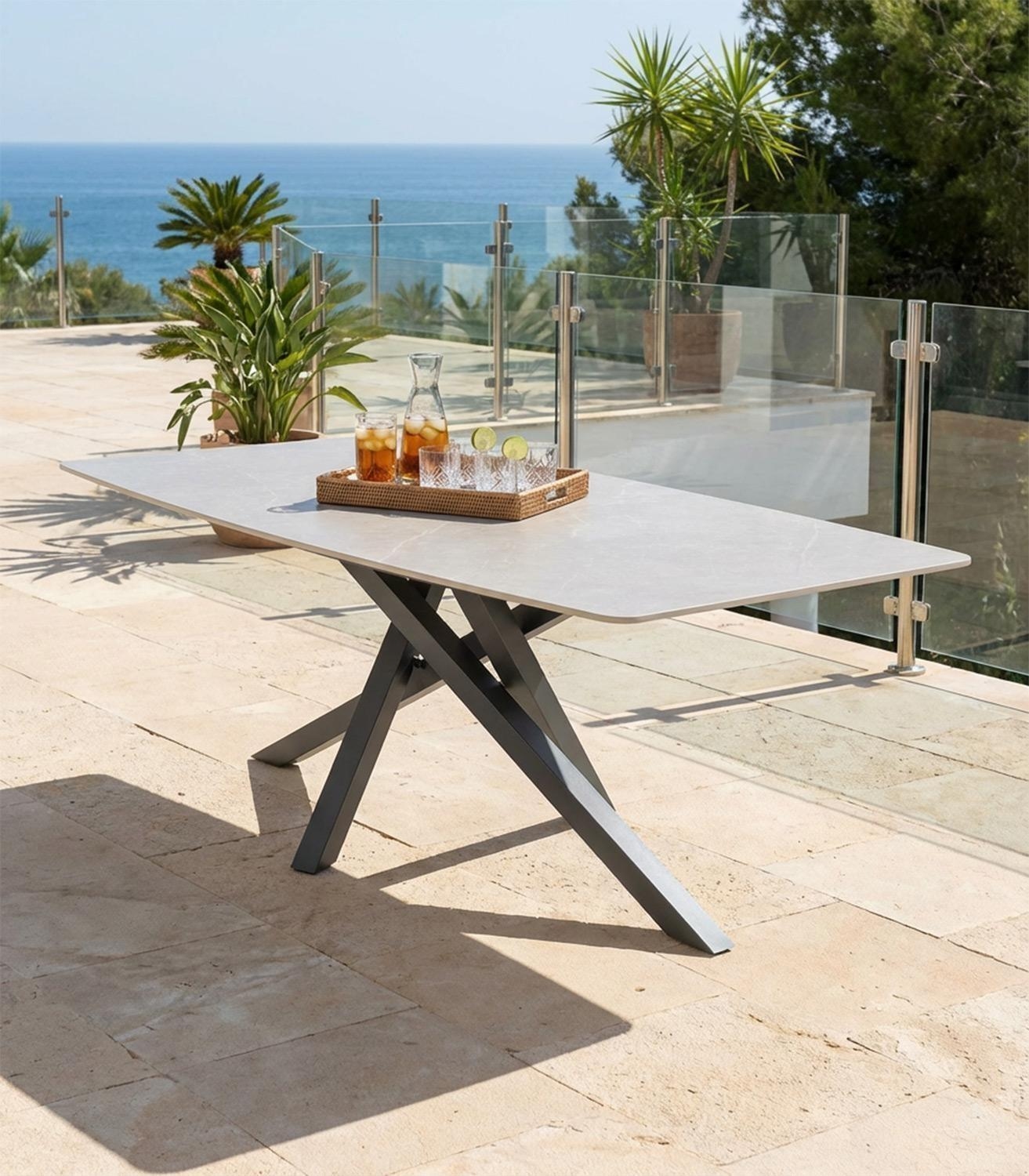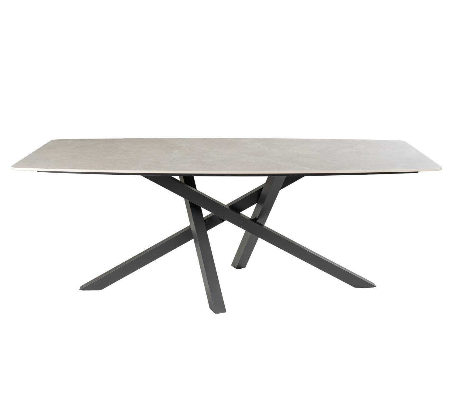 Der Gartentisch COMO der Marke Home4You verfügt über eine Tischplatte aus gesintertem Stein in Beige sowie ein Spider-Gestell aus Aluminium in Taupe. Dieses Gartenmöbel weist eine Breite von 200 cm, eine Höhe von 75 cm und eine Tiefe von 100 cm auf.