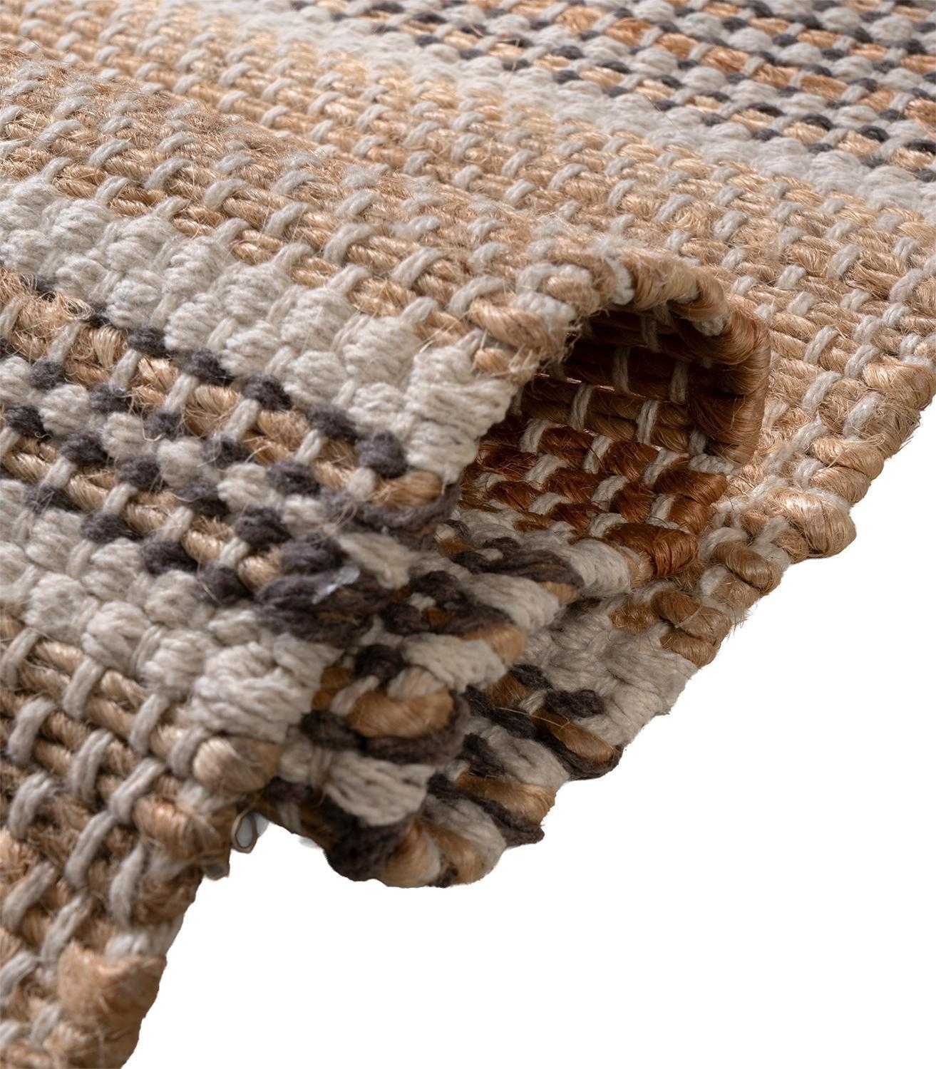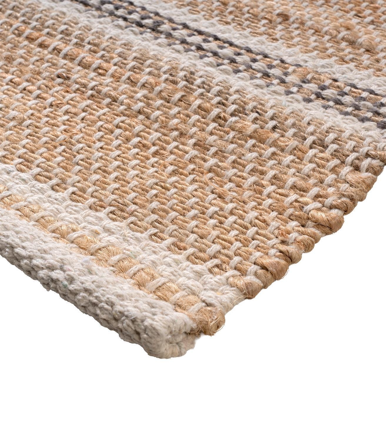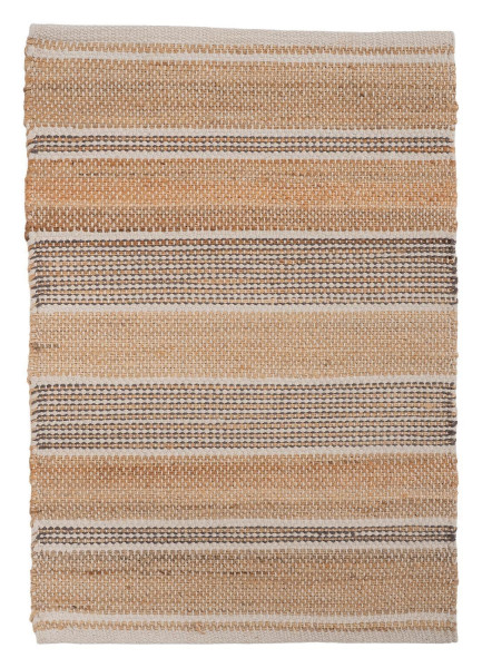 Der Handwebteppich von Home4You überzeugt mit seinem melierten Design in Beige und Weiß sowie einem Streifenmuster. Mit einer Größe von 60 x 90 cm eignet er sich ideal für verschiedene Wohnbereiche. Gefertigt aus einem Mischgewebe aus Jute und Baumwolle, bringt er eine natürliche Ausstrahlung in den Raum und lässt sich vielseitig kombinieren.