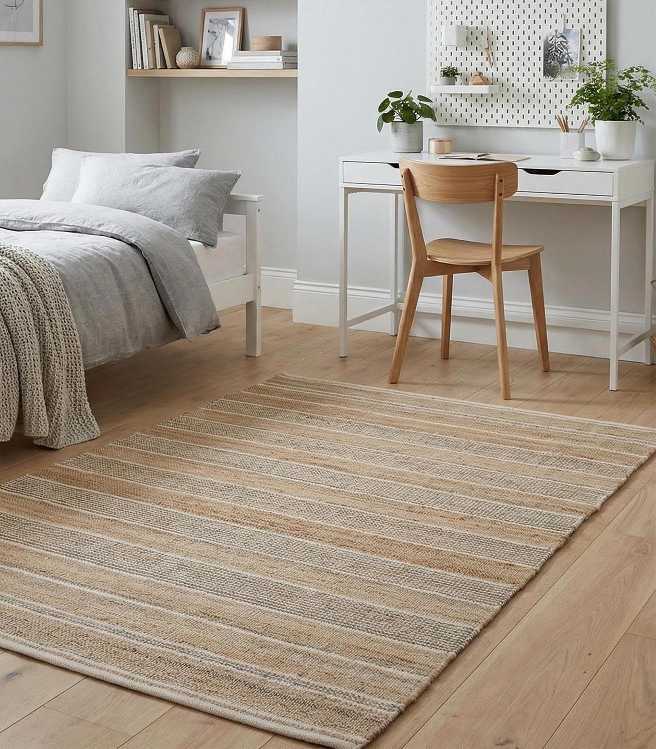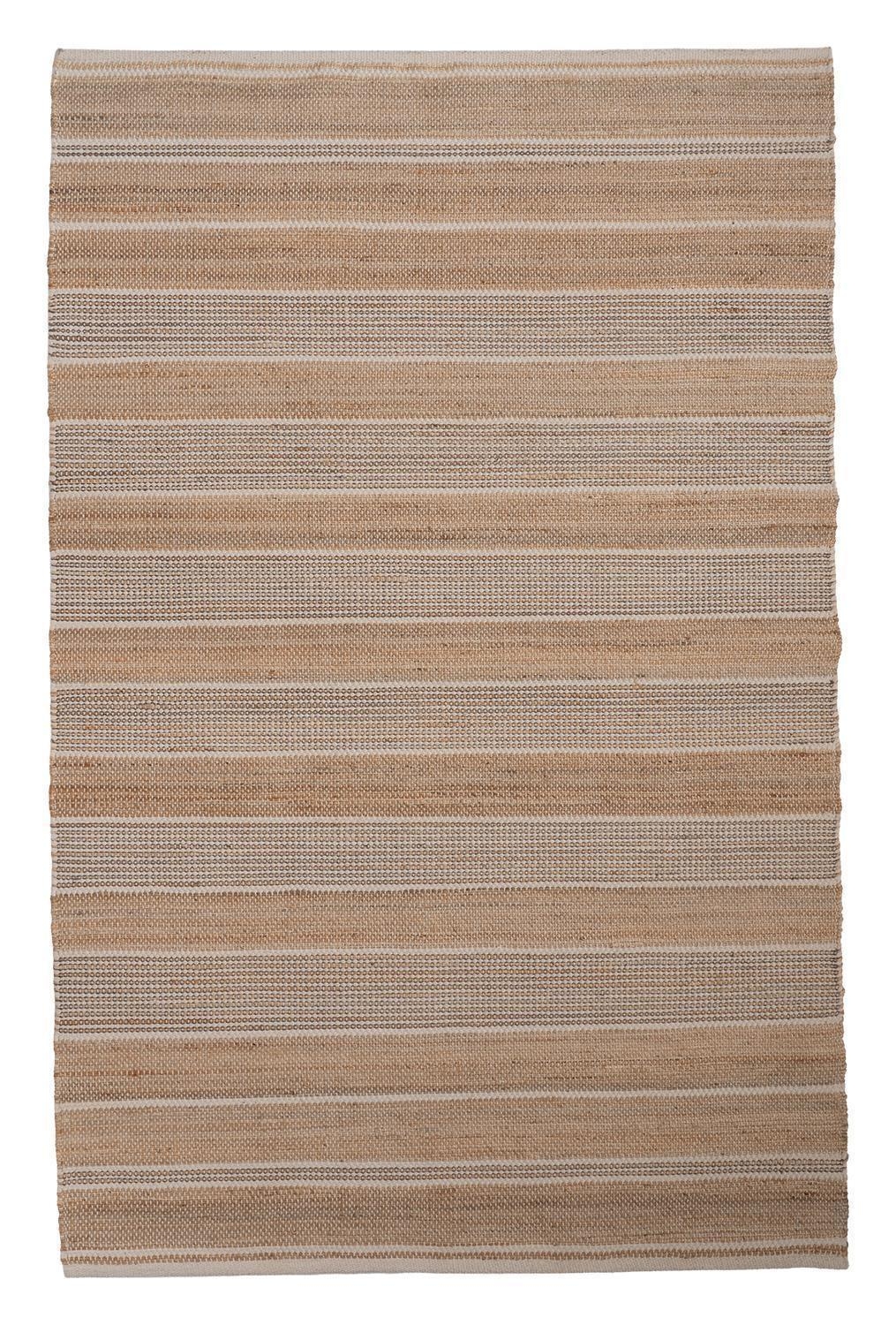 Der Handwebteppich von Home4You überzeugt mit seinem melierten Design in Beige und Weiß sowie einem Streifenmuster. Mit einer Größe von 140 x 230 cm eignet er sich ideal für verschiedene Wohnbereiche. Gefertigt aus einem Mischgewebe aus Jute und Baumwolle, bringt er eine natürliche Ausstrahlung in den Raum und lässt sich vielseitig kombinieren.