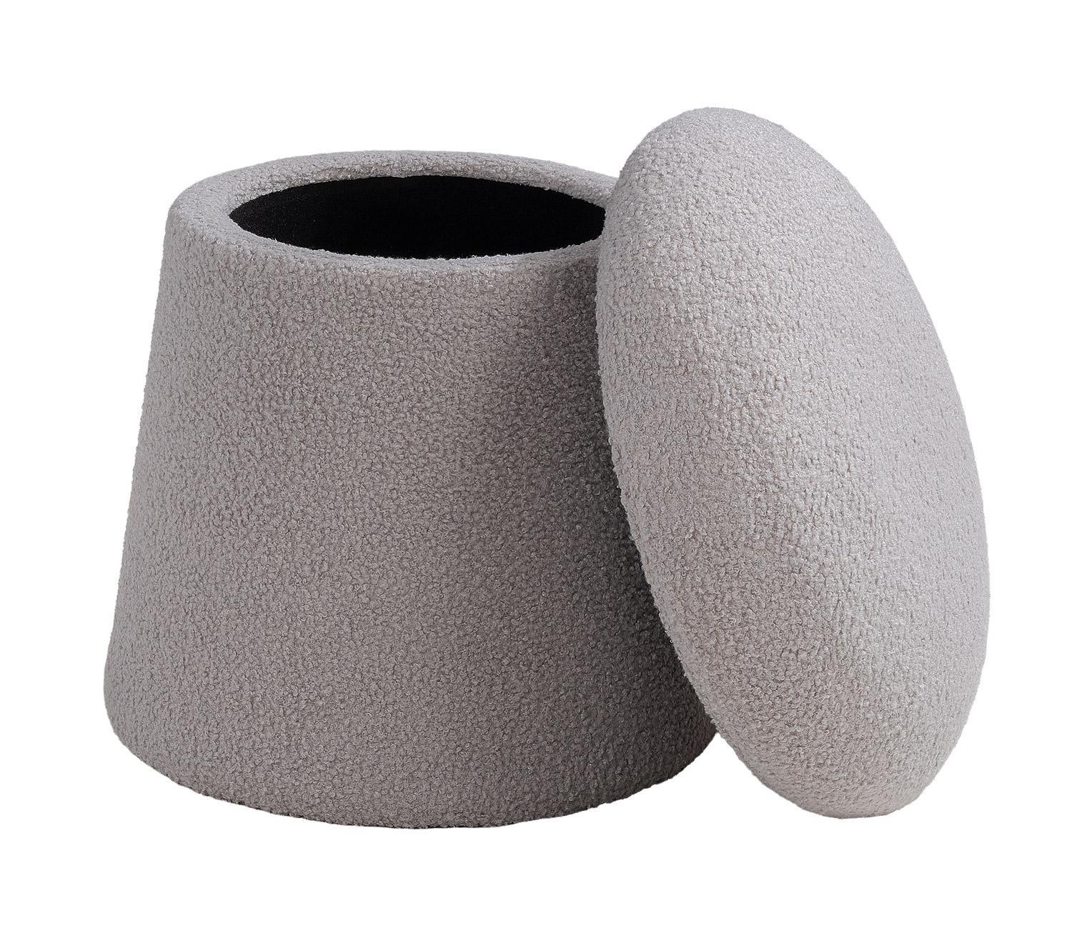 Ø 44 cm - Hellgrau - Teddy-Stoffbezug - MDF - mit abnehmbaren Deckel