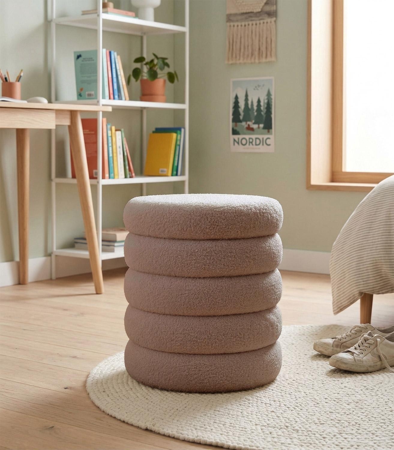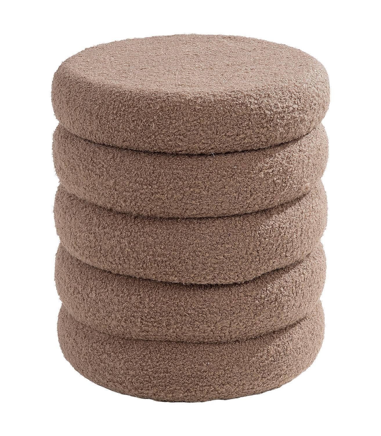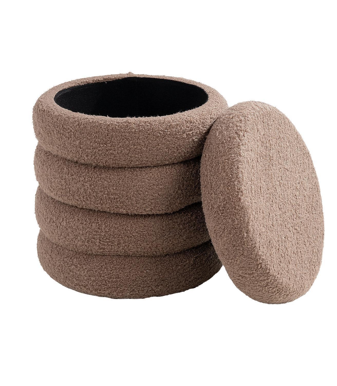 Der Hocker TONIO von Home4You überzeugt mit seinem weichen Teddystoffbezug in Taupe und bringt Gemütlichkeit in jeden Wohnraum. Mit einem Durchmesser von 40 cm und einer Höhe von 46 cm eignet er sich auch ideal als Fußhocker. Das Gestell aus MDF sorgt für Stabilität und ist bis 120 kg belastbar. Die abnehmbare Sitzfläche bietet praktischen Stauraum im Inneren und macht den Hocker besonders vielseitig.
