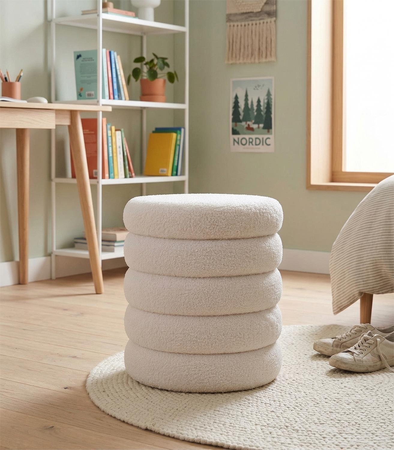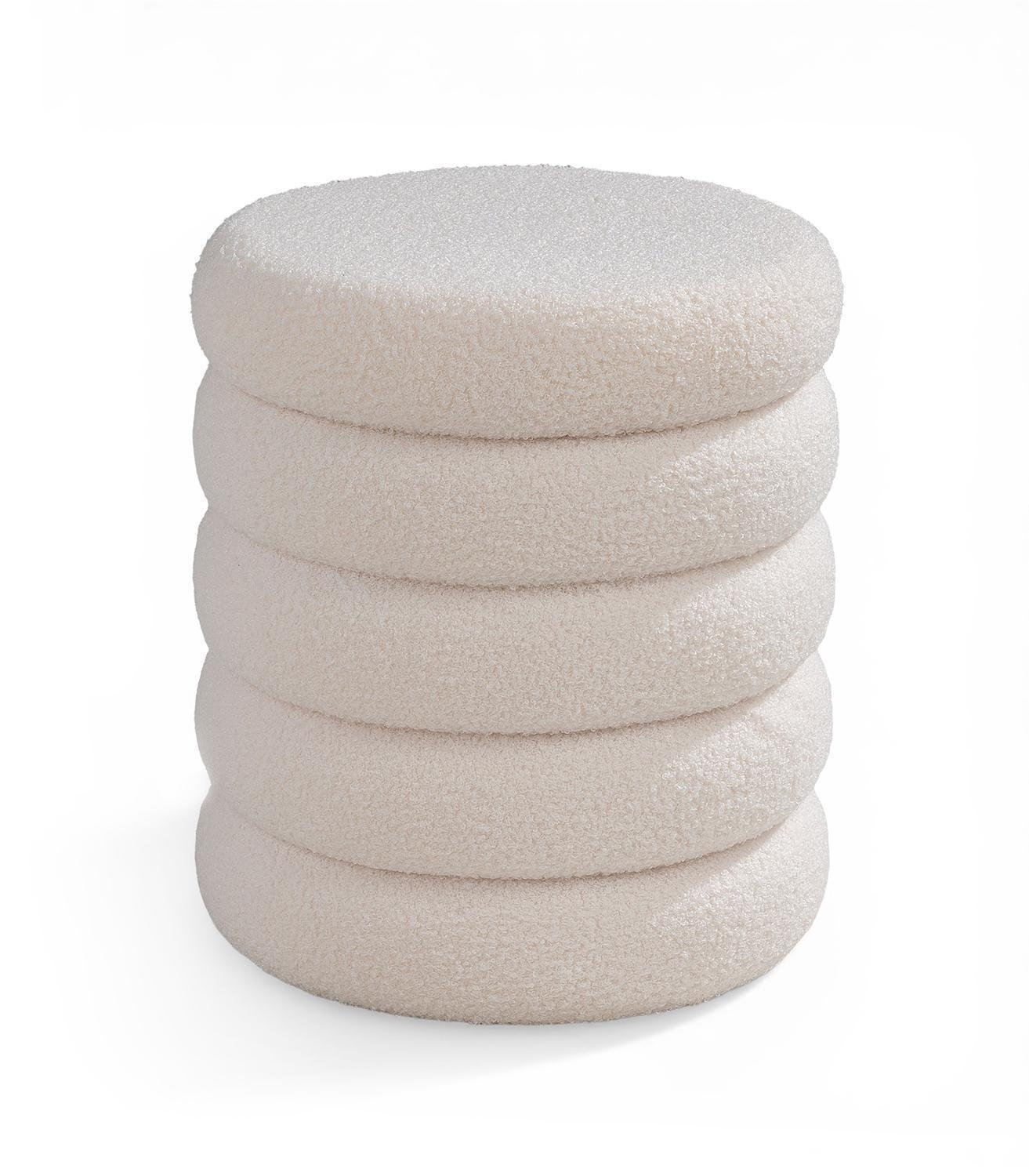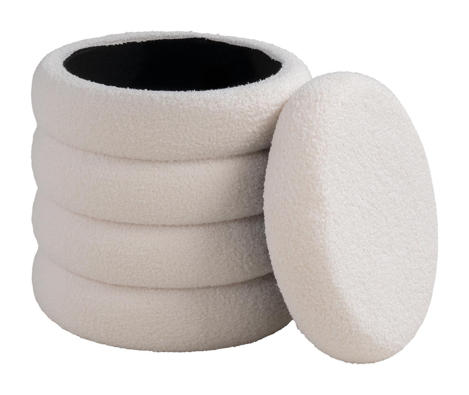 Der Hocker TONIO von Home4You überzeugt mit seinem weichen Teddystoffbezug in Wollweiß und bringt Gemütlichkeit in jeden Wohnraum. Mit einem Durchmesser von 40 cm und einer Höhe von 46 cm eignet er sich auch ideal als Fußhocker. Das Gestell aus MDF sorgt für Stabilität und ist bis 120 kg belastbar. Die abnehmbare Sitzfläche bietet praktischen Stauraum im Inneren und macht den Hocker besonders vielseitig.