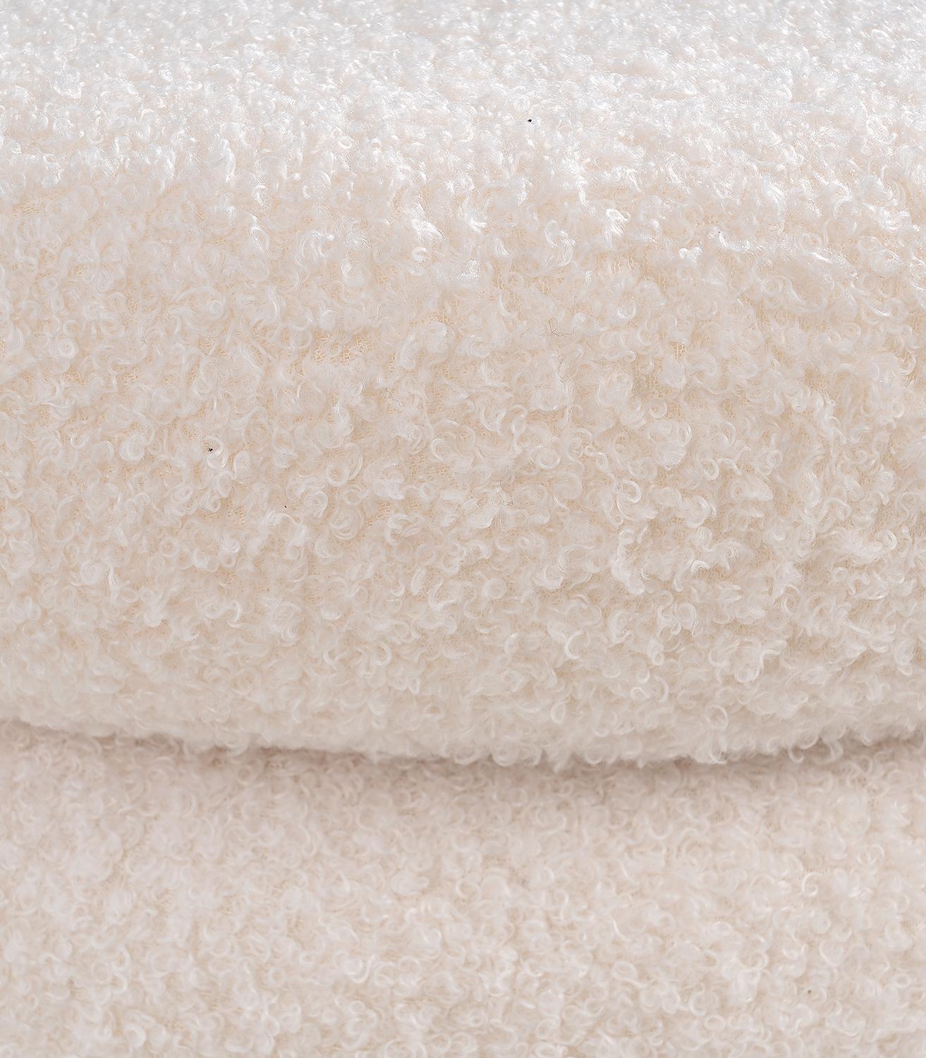 Ø 40 cm - Wollweiß - Teddy-Stoffbezug - MDF - mit abnehmbaren Deckel