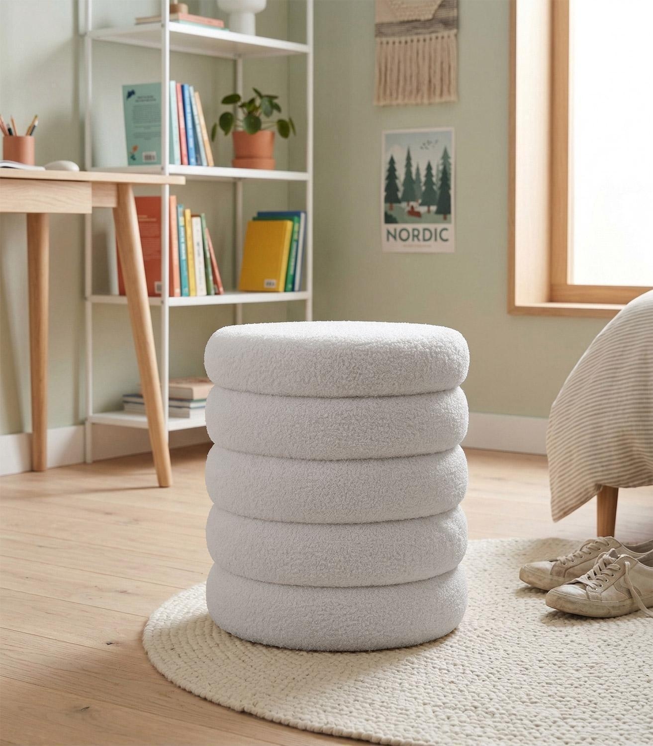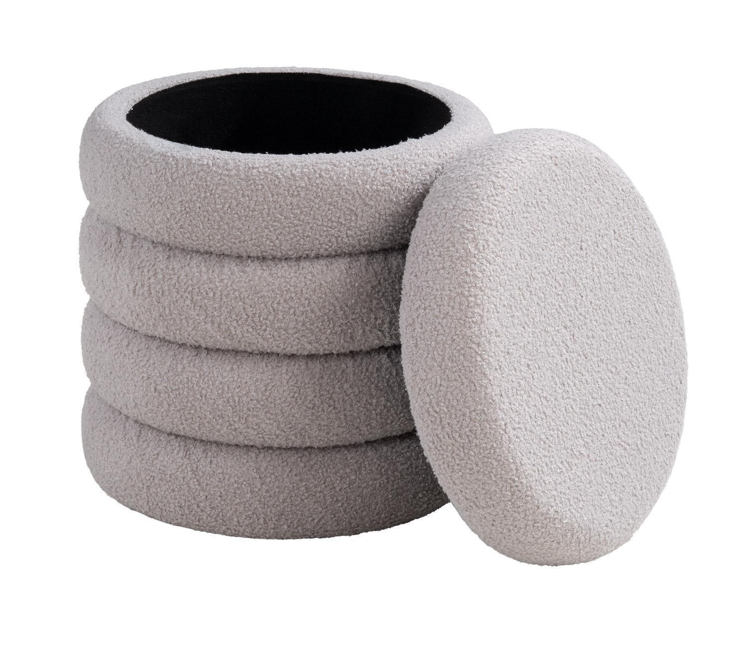 Der Hocker TONIO von Home4You überzeugt mit seinem weichen Teddystoffbezug in Hellgrau und bringt Gemütlichkeit in jeden Wohnraum. Mit einem Durchmesser von 40 cm und einer Höhe von 46 cm eignet er sich auch ideal als Fußhocker. Das Gestell aus MDF sorgt für Stabilität und ist bis 120 kg belastbar. Die abnehmbare Sitzfläche bietet praktischen Stauraum im Inneren und macht den Hocker besonders vielseitig.