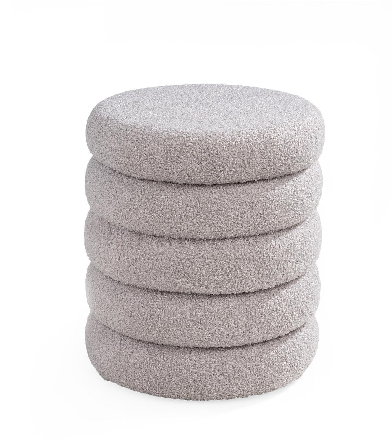 Ø 40 cm - Hellgrau - Teddy-Stoffbezug - MDF - mit abnehmbaren Deckel