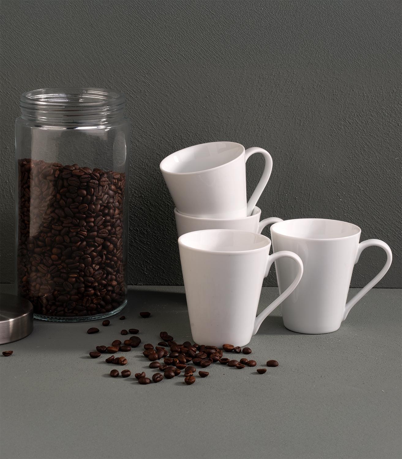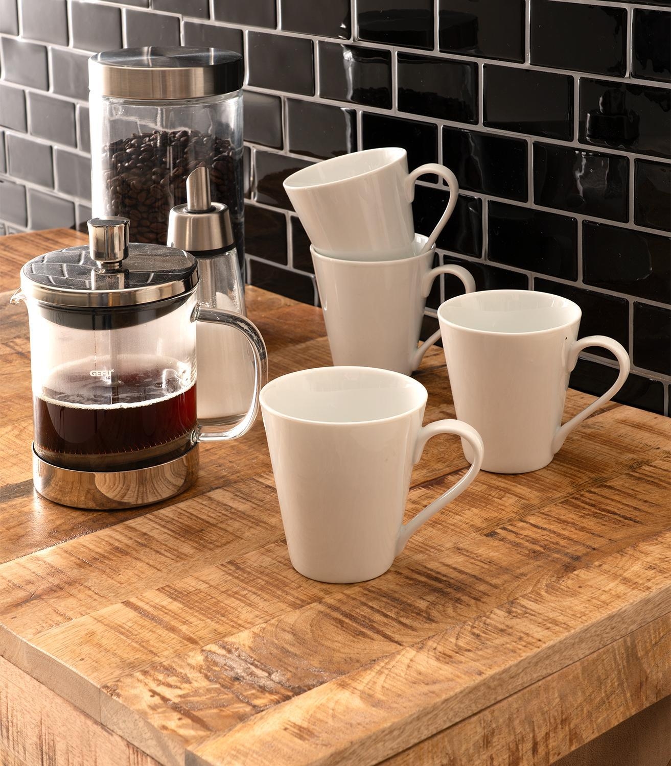 Die weiße Kaffeetasse von Home4You überzeugt mit einem Fassungsvermögen von 300 ml und klassischem Design. Gefertigt aus Porzellan mit hoher Kantenschlagfestigkeit und Korrosionsbeständigkeit, eignet sie sich sowohl für den Alltag als auch für besondere Momente. Die unifarbene Tasse ist spülmaschinenfest und damit besonders pflegeleicht. Mit einer Breite von 12 cm, einem Durchmesser von 8,5 cm und einer Höhe von 10 cm liegt sie angenehm in der Hand und bietet ausreichend Platz für aromatischen Kaffeegenuss.