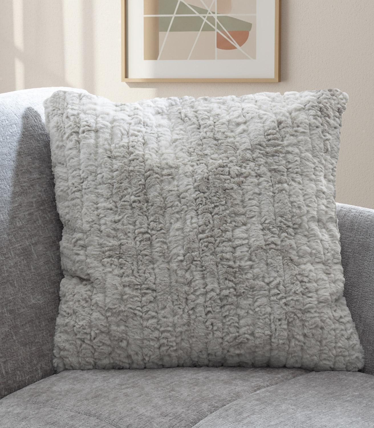 50 x 50 cm - Greige - Polyester - in Flauschoptik - mit Reißverschluss