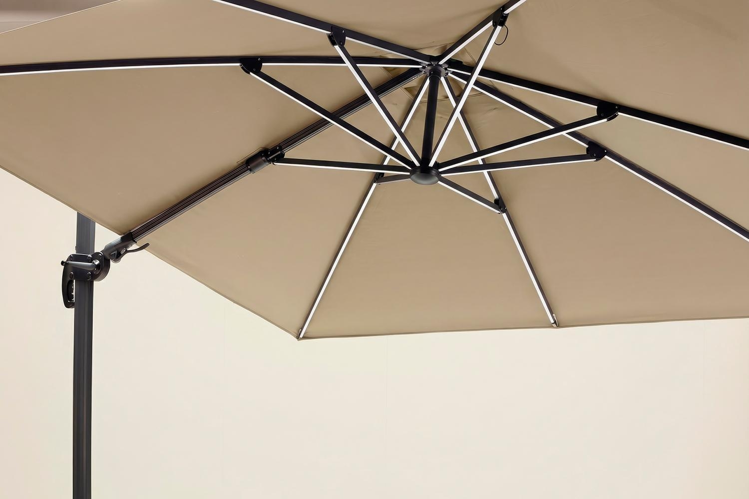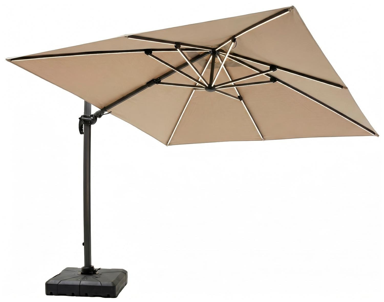 300 x 300 cm - Anthrazit - Taupe - Aluminium - Polyester - mit LED-Beleuchtung