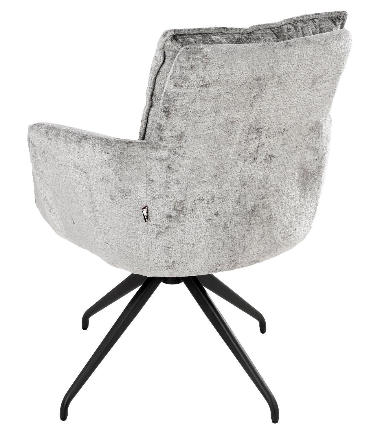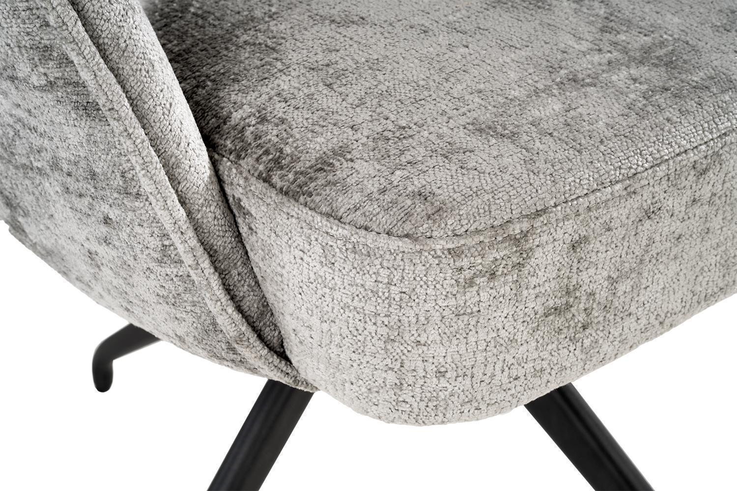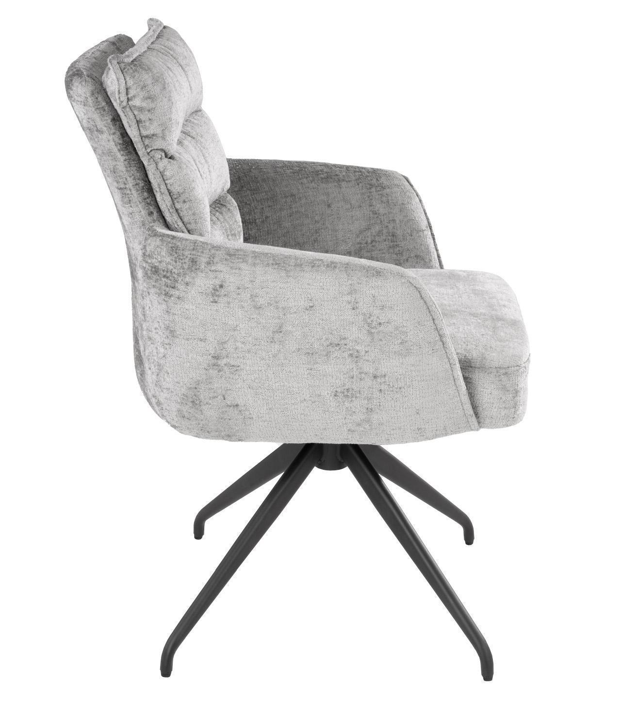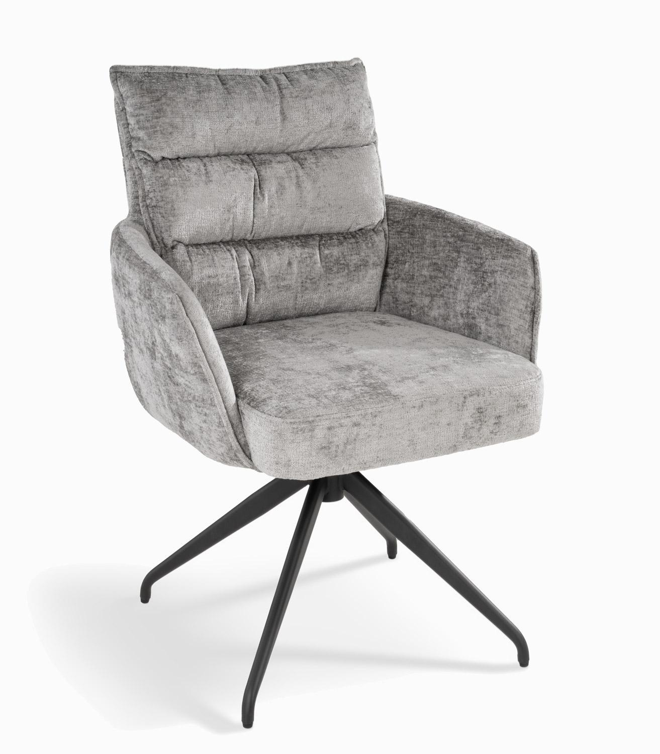 Der Polsterstuhl ALFI der Marke Home4You ist mit einem Webstoffbezug in der Farbe Grau ausgestattet. Das Gestell besteht aus schwarzem Metall, was für Stabilität sorgt. Der Stuhl verfügt über gepolsterte Armlehnen sowie Quersteppungen in der Rückenlehne, die das Design strukturieren. Eine 360-Grad-Drehfunktion ermöglicht eine flexible Nutzung. Die Abmessungen des Stuhls betragen 61 cm in der Breite, 86 cm in der Höhe und 51 cm in der Tiefe. Die Sitzhöhe liegt bei 48 cm, die Sitztiefe bei 45 cm.