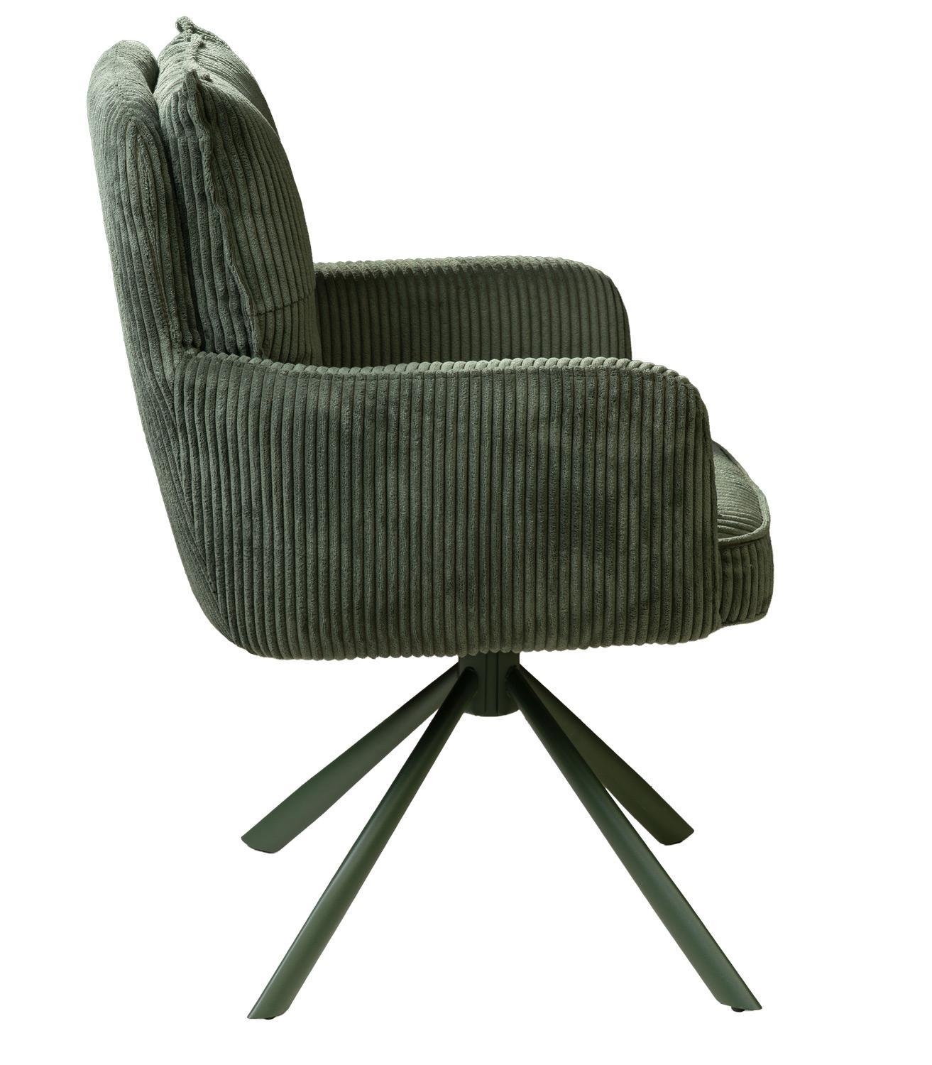 - Polsterstuhl mit Stoffbezug in olivgrüner Cordoptik