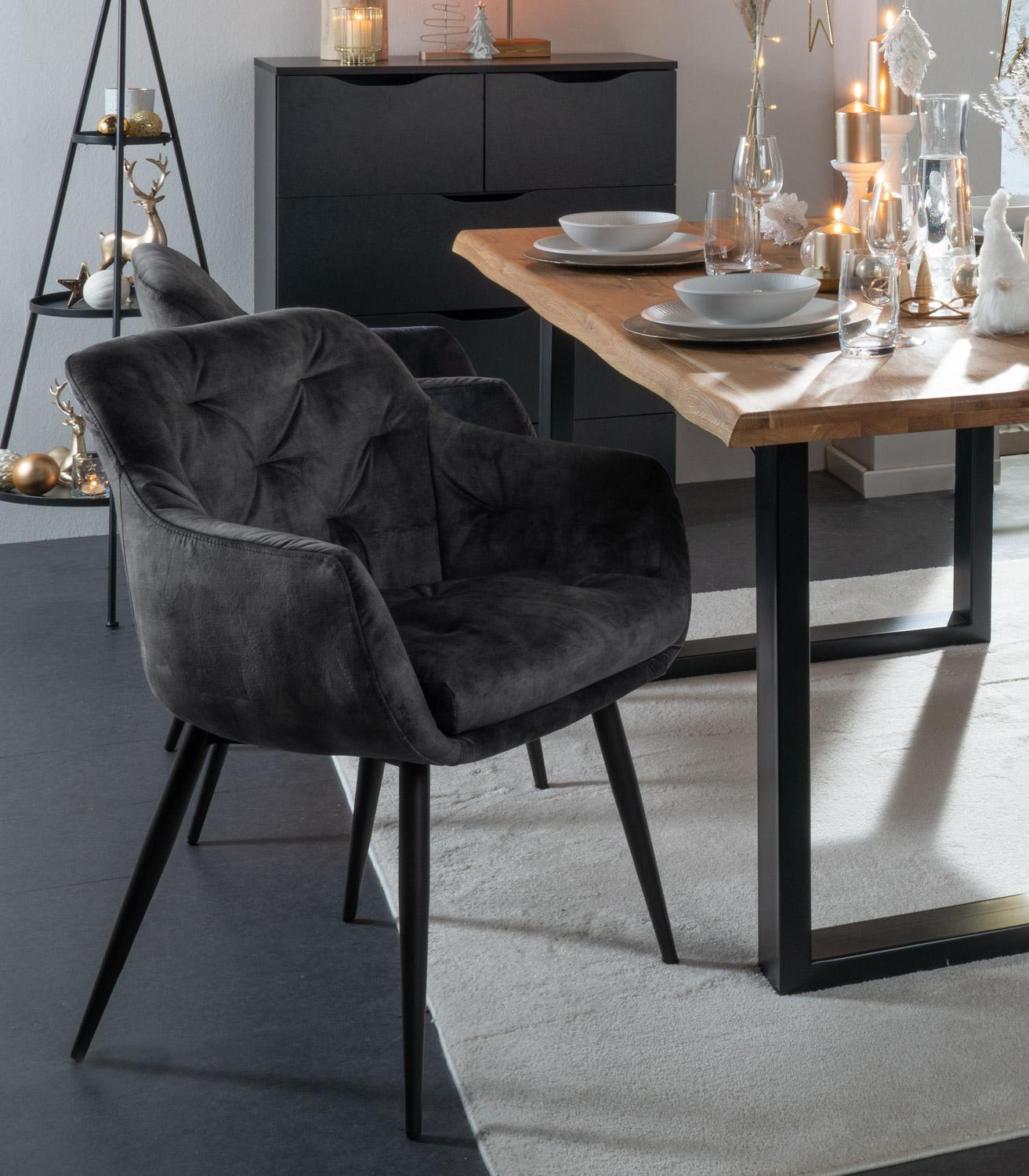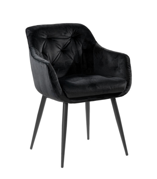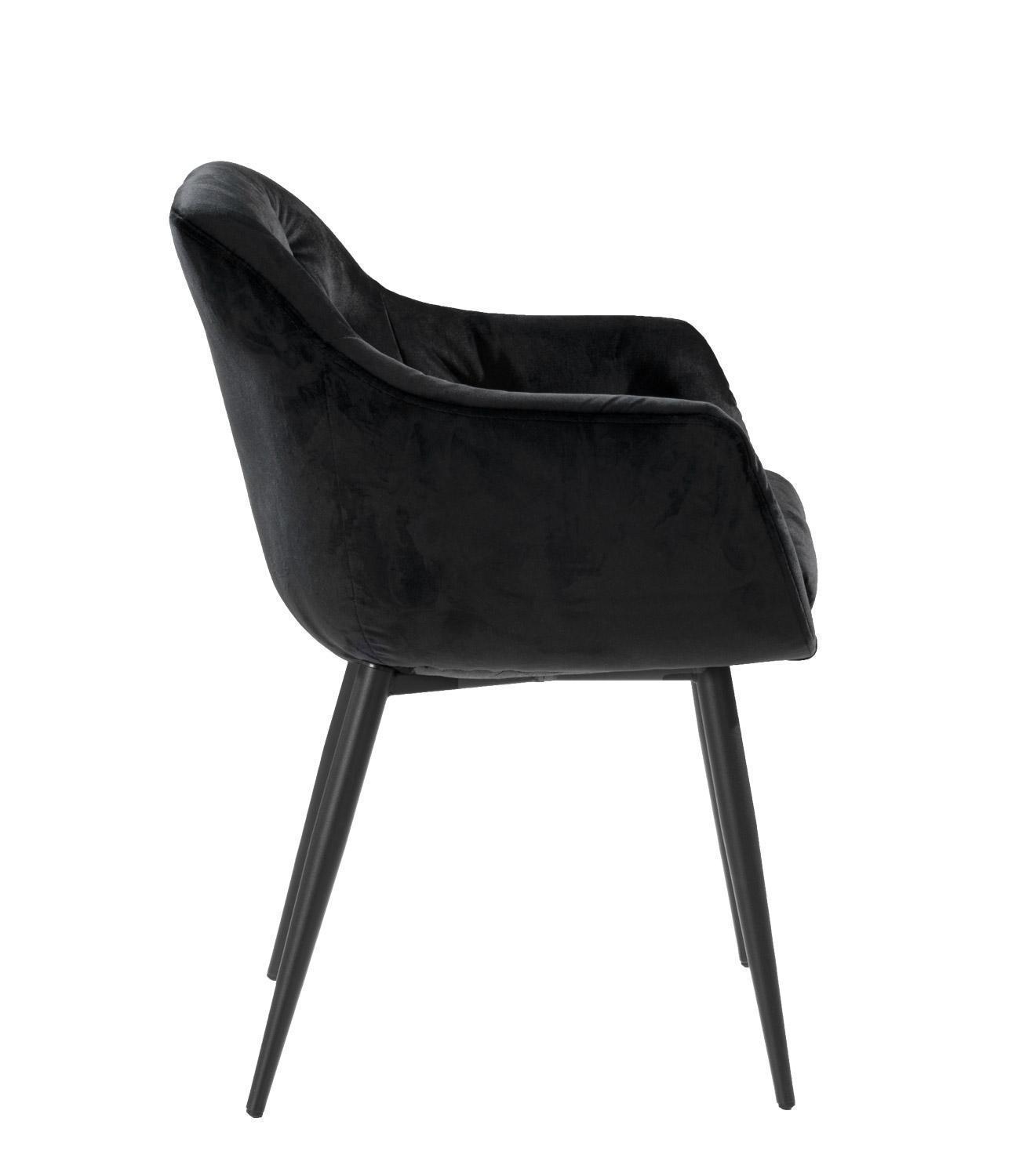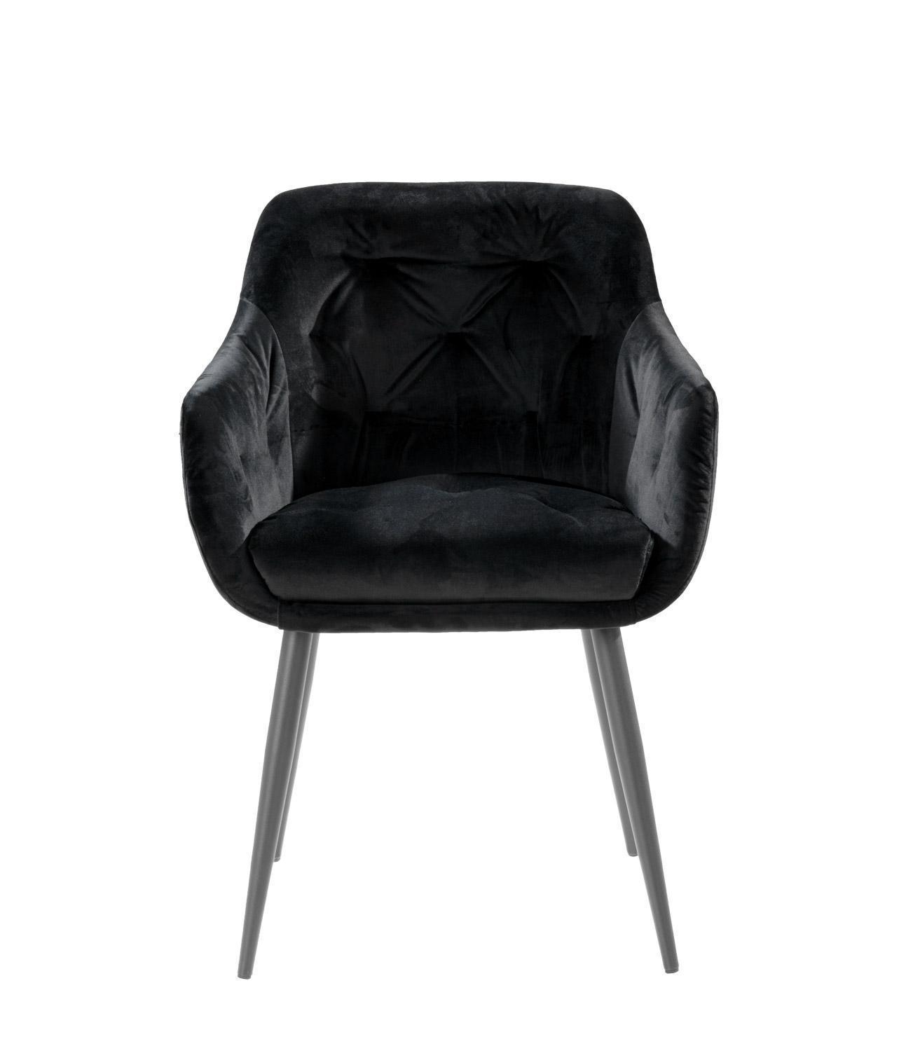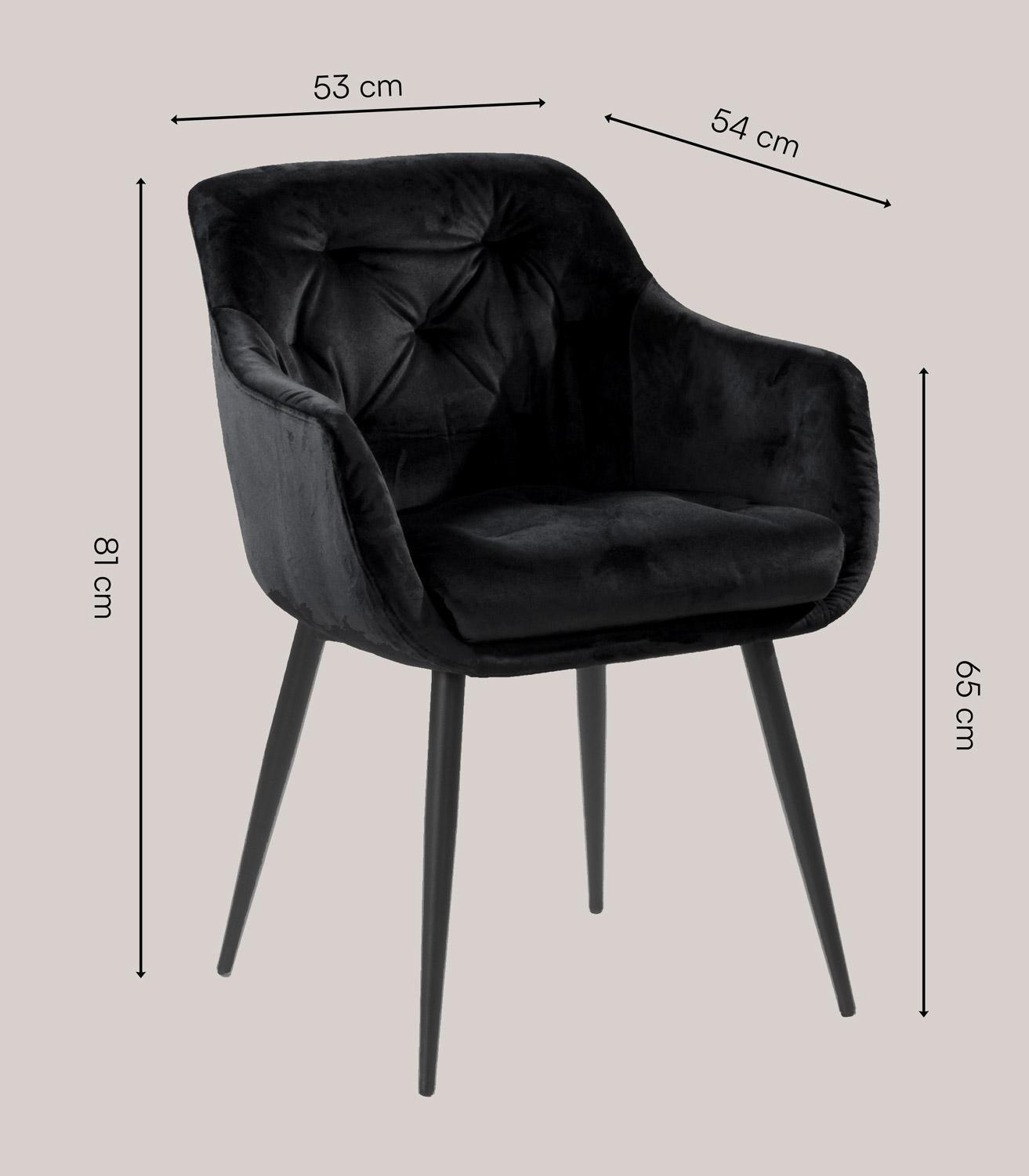 Der Polsterstuhl von Home4You ist eine elegante Sitzgelegenheit für Ihr Zuhause. Mit einem Samtbezug in Schwarz und einem Metallgestell bietet dieser Stuhl nicht nur Komfort, sondern auch ein modernes Design. Er verfügt über Armlehnen für zusätzlichen Komfort und ist 53 cm breit, 81 cm hoch und 54 cm tief. Die Sitzfläche misst 45 cm in der Breite, 50 cm in der Höhe und 42 cm in der Tiefe. Der Stuhl wird teilmontiert geliefert, was die Montage erleichtert. Dieser Polsterstuhl ist eine stilvolle Ergänzung für Ihr Esszimmer, Wohnzimmer oder Büro.