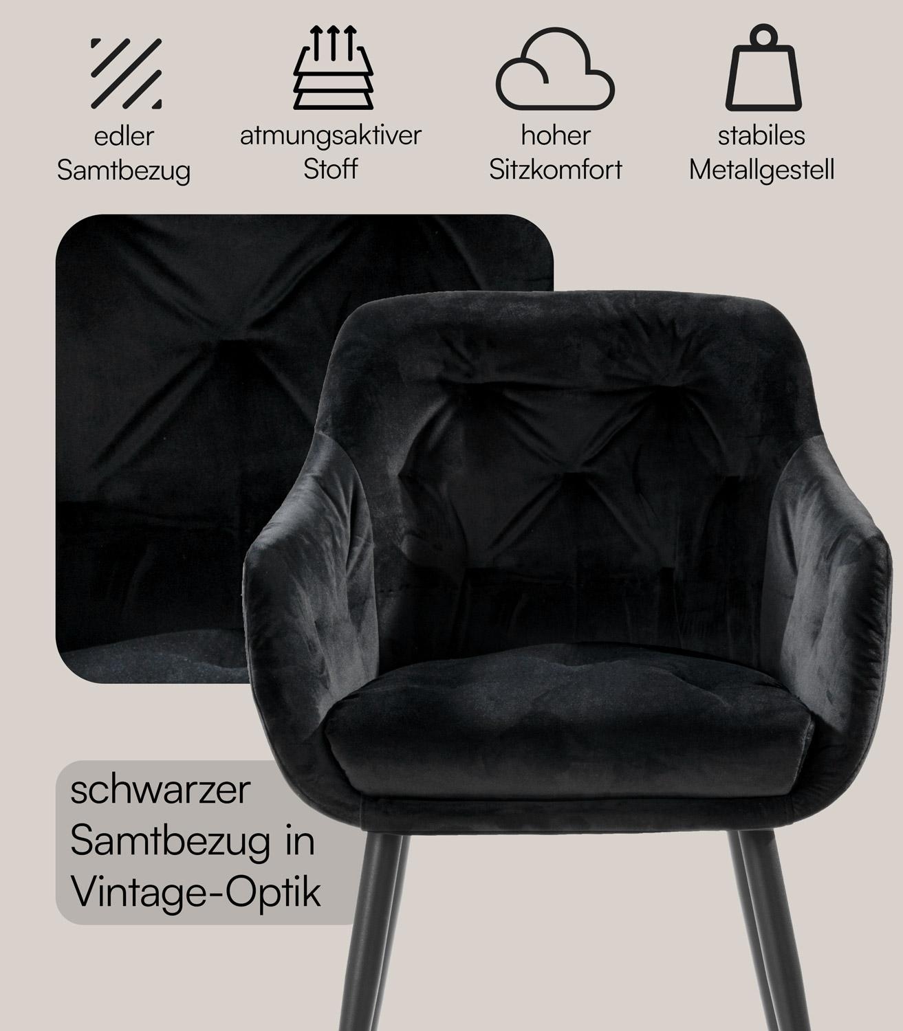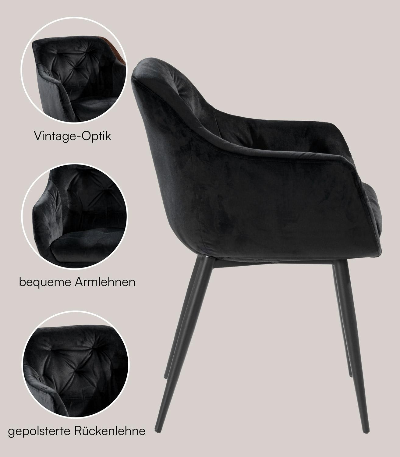 Schwarz - Samtbezug - Metallgestell - mit Armlehnen