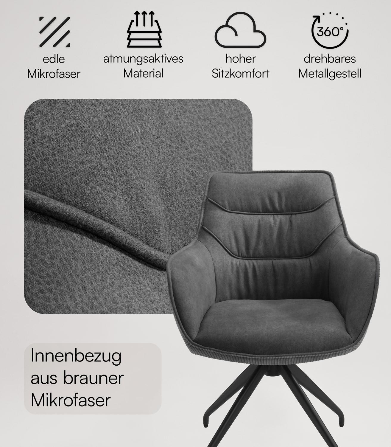 Grau - Schwarz - Cord - Mikrofaser - Metallgestell - 360 Grad drehbar
