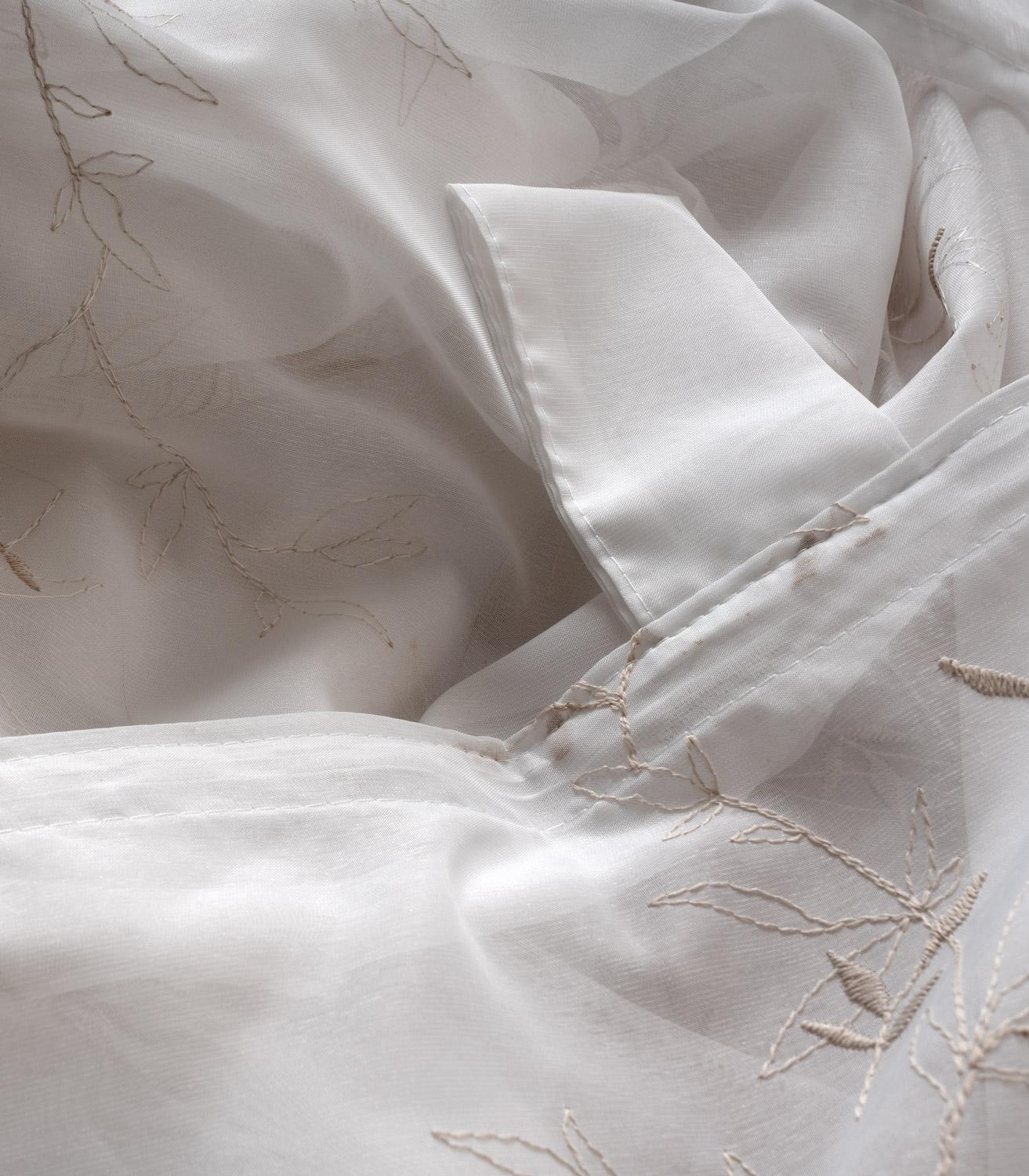 Der Schlaufenschal RAEKA von Home4You in elegantem Weiß verleiht Ihren Wohnräumen eine helle und freundliche Atmosphäre. Mit einer Größe von 140 x 245 cm eignet er sich ideal für Fenster in Wohn- und Schlafbereichen. Das halbtransparente Polyester sorgt für angenehmen Lichteinfall, während die fein bestickten Blätterranken in Taupe einen dekorativen Akzent setzen. Der Schal ist bei 60 °C waschbar und bügelgeeignet und überzeugt durch seine pflegeleichte Qualität.