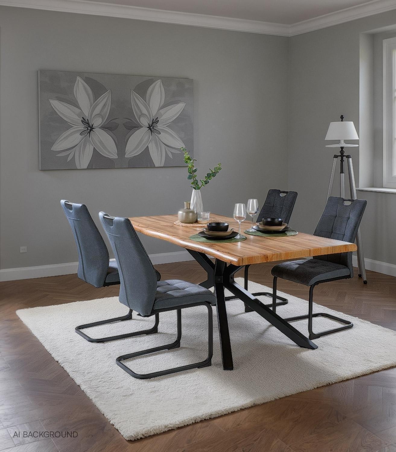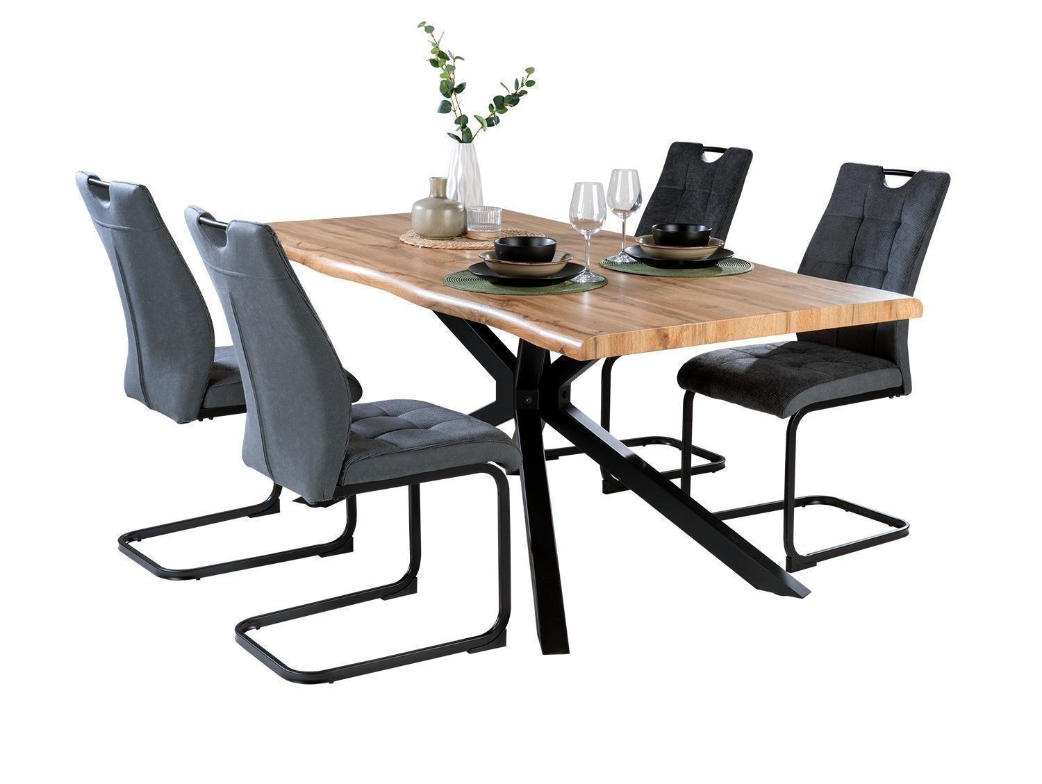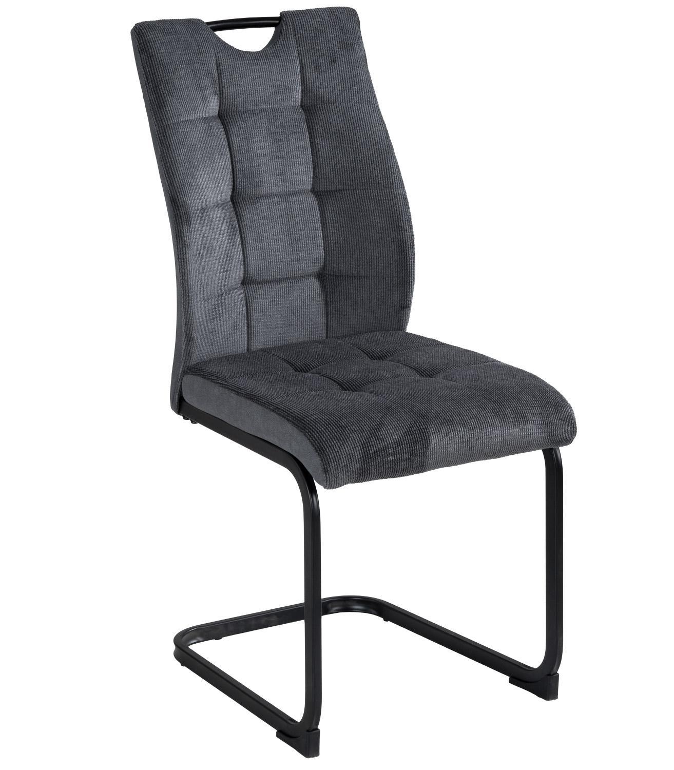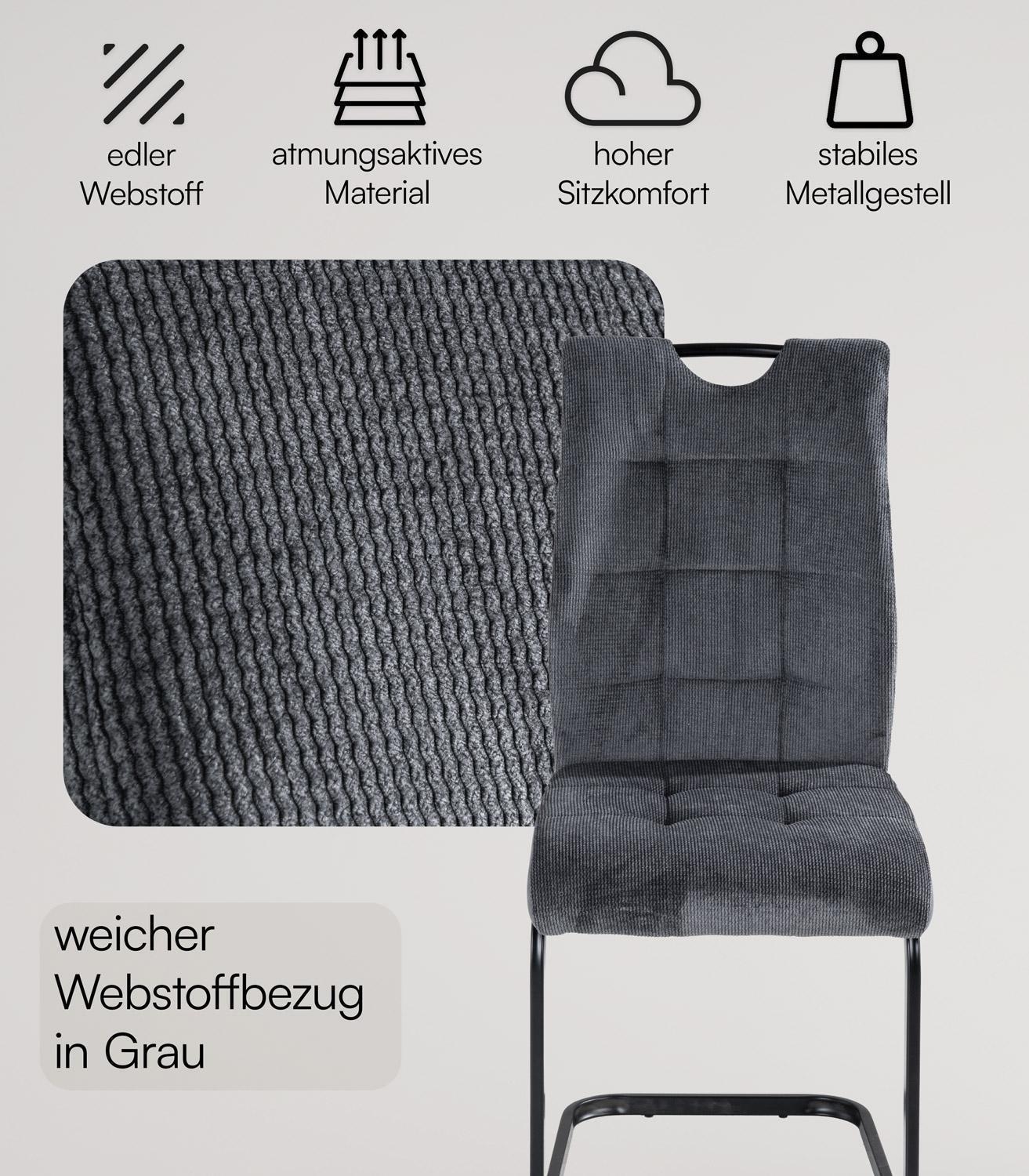 Der Schwingstuhl BASKO der Marke Home4You verfügt über einen Webstoffbezug in Grau im Sitz- und Rückenlehnenbereich, während der Rücken mit einem Mikrofaserbezug in gleicher Farbgebung ausgestattet ist. Das Gestell ist aus schwarzem Metall gefertigt und verleiht dem Stuhl seine charakteristische Schwingfunktion. Sitz- und Rückenfläche sind mit Steppungen versehen. Ein integrierter Griff an der Rückenlehne erleichtert das Umplatzieren des Stuhls. Die Abmessungen betragen 44 cm in der Breite, 96 cm in der Höhe und 59 cm in der Tiefe. Die Sitzhöhe liegt bei 49 cm.