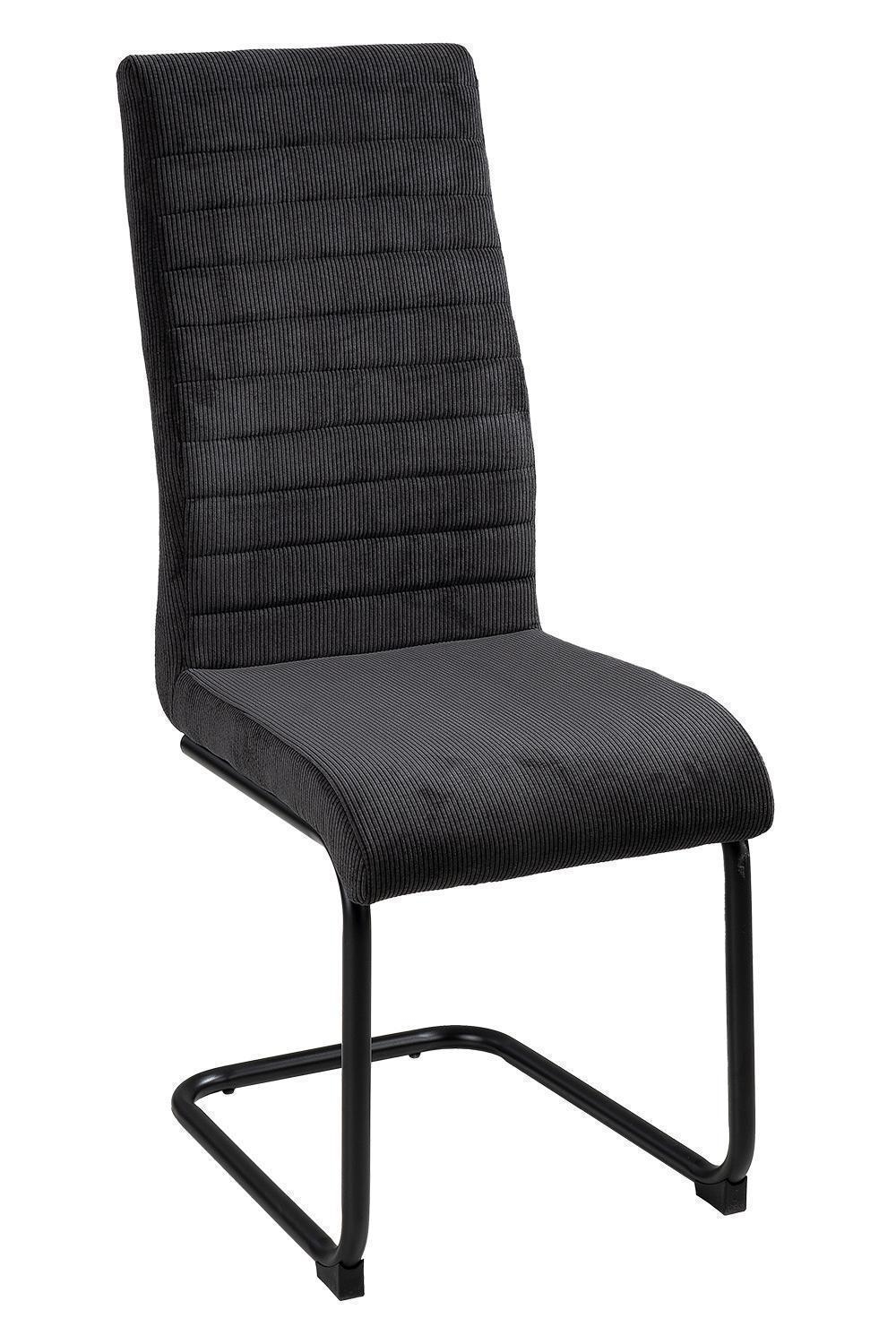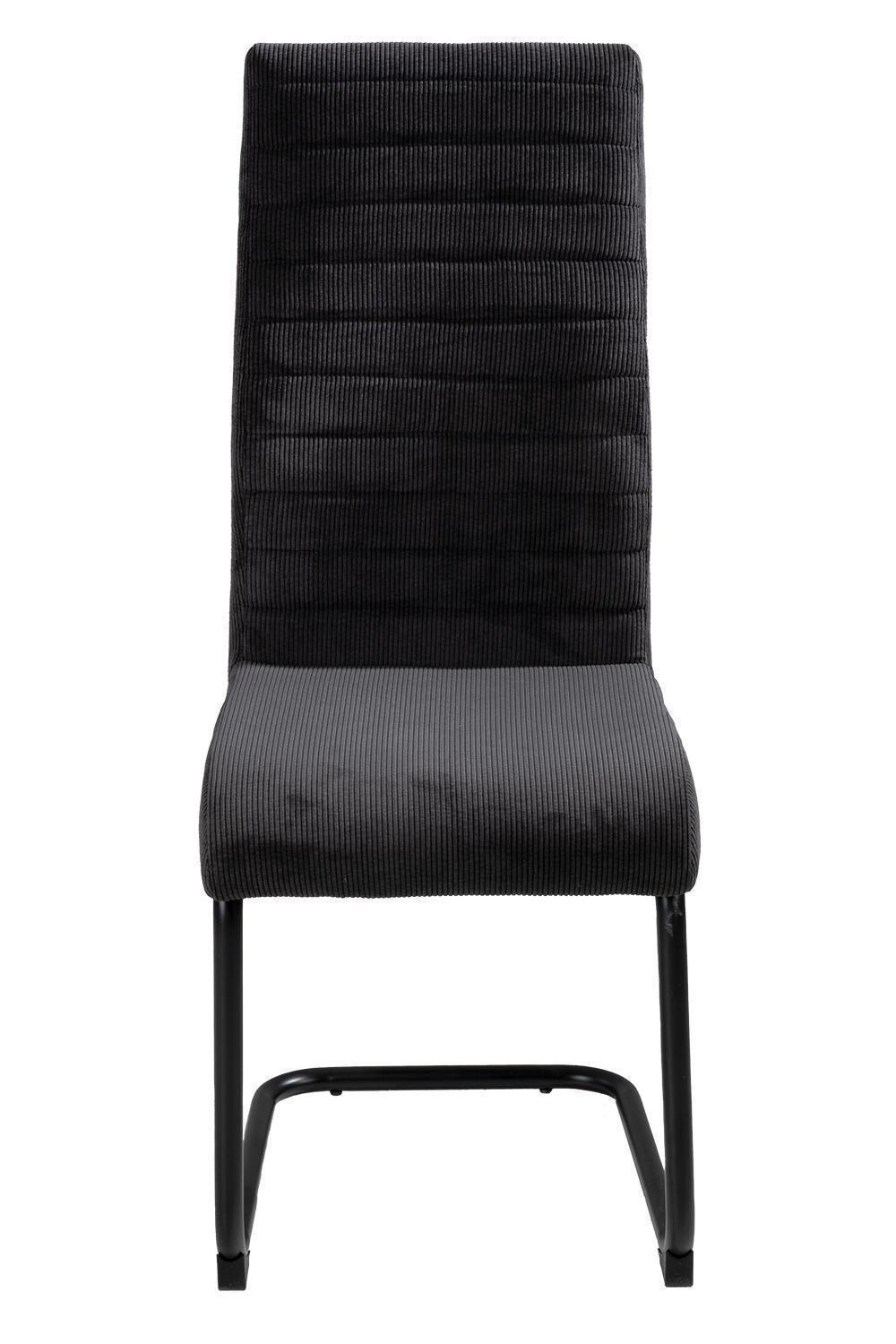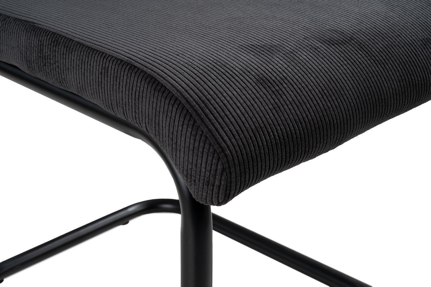 Der Schwingstuhl von Home4You aus dunkelgrauem Cordbezug verfügt über eine attraktive Quersteppung. Sein Gestell besteht aus schwarzem Metall. Die Abmessungen betragen 42 cm in der Breite, 102 cm in der Höhe und 43 cm in der Tiefe. Die Sitzfläche bietet eine Breite von 42 cm, eine Höhe von 48 cm und eine Tiefe von 43 cm. Der Stuhl wird teilmontiert geliefert und hat eine Belastbarkeit von bis zu 120 kg.