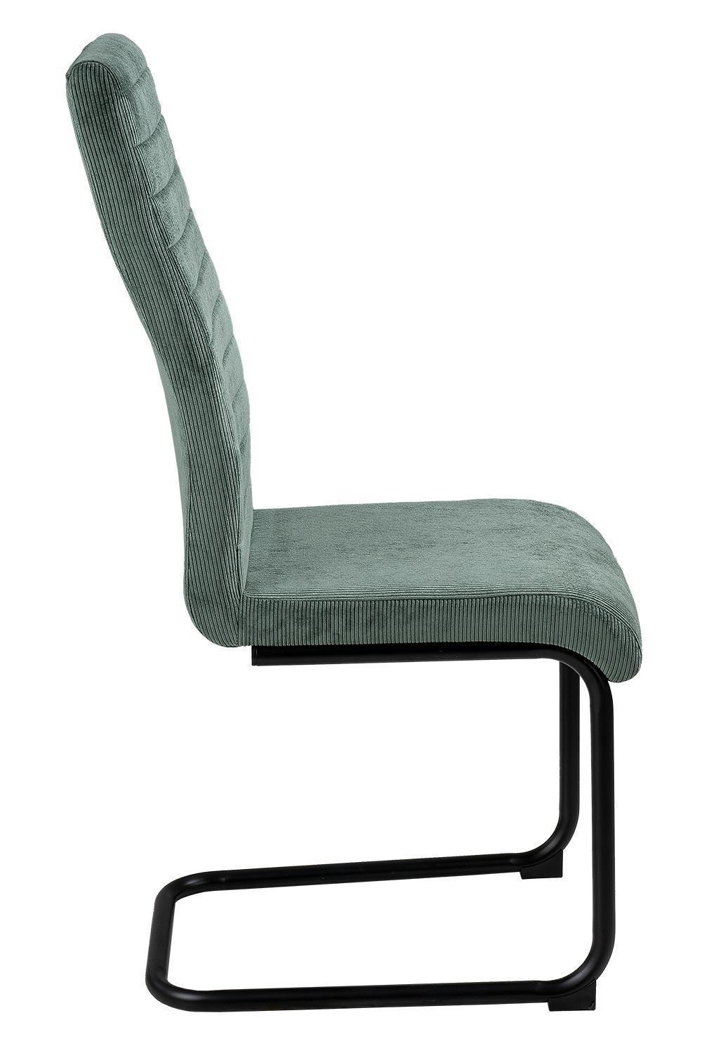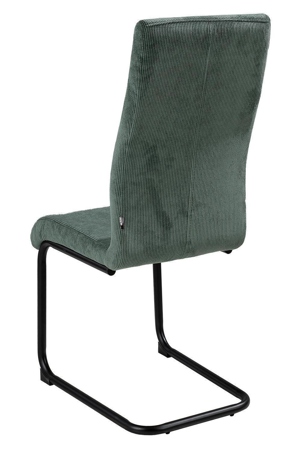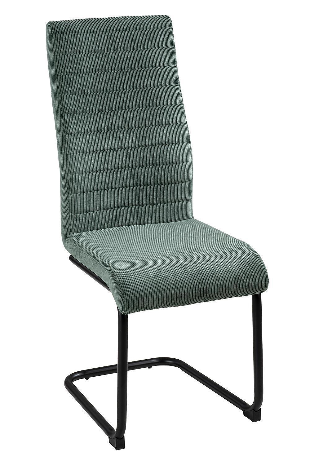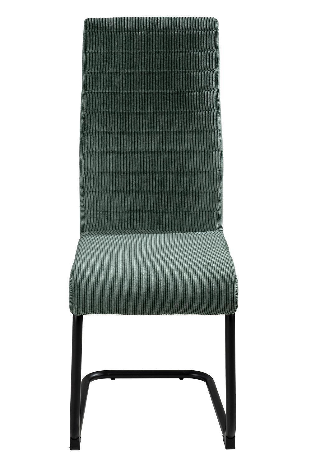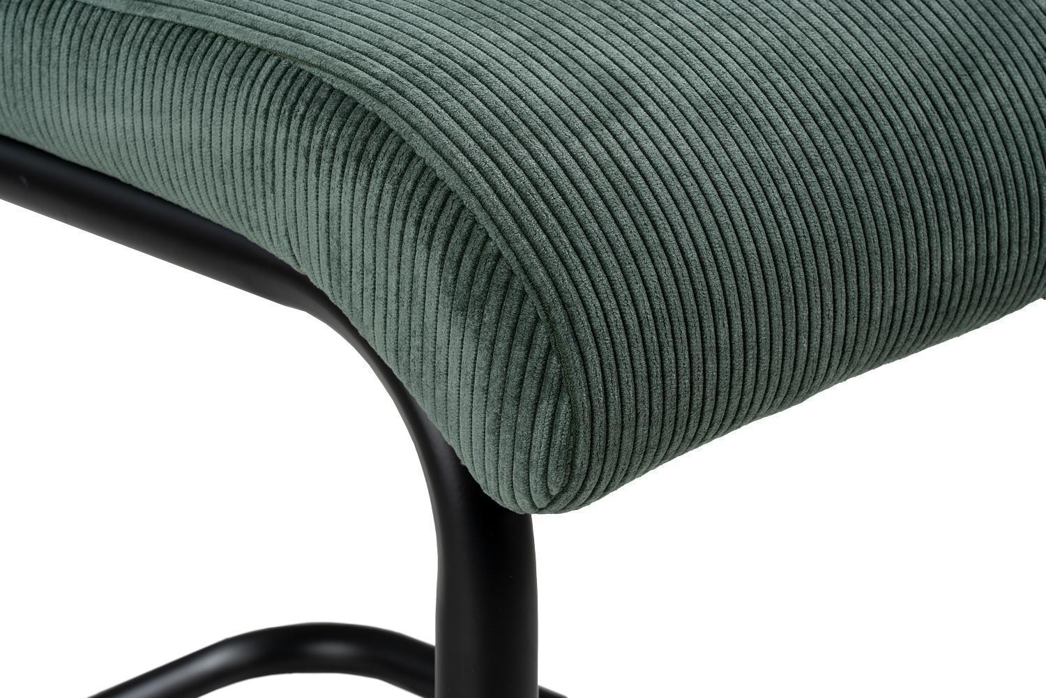 Der Schwingstuhl von Home4You aus dunkelgrünem Cordbezug verfügt über eine attraktive Quersteppung. Sein Gestell besteht aus schwarzem Metall. Die Abmessungen betragen 42 cm in der Breite, 102 cm in der Höhe und 43 cm in der Tiefe. Die Sitzfläche bietet eine Breite von 42 cm, eine Höhe von 48 cm und eine Tiefe von 43 cm. Der Stuhl wird teilmontiert geliefert und hat eine Belastbarkeit von bis zu 120 kg.