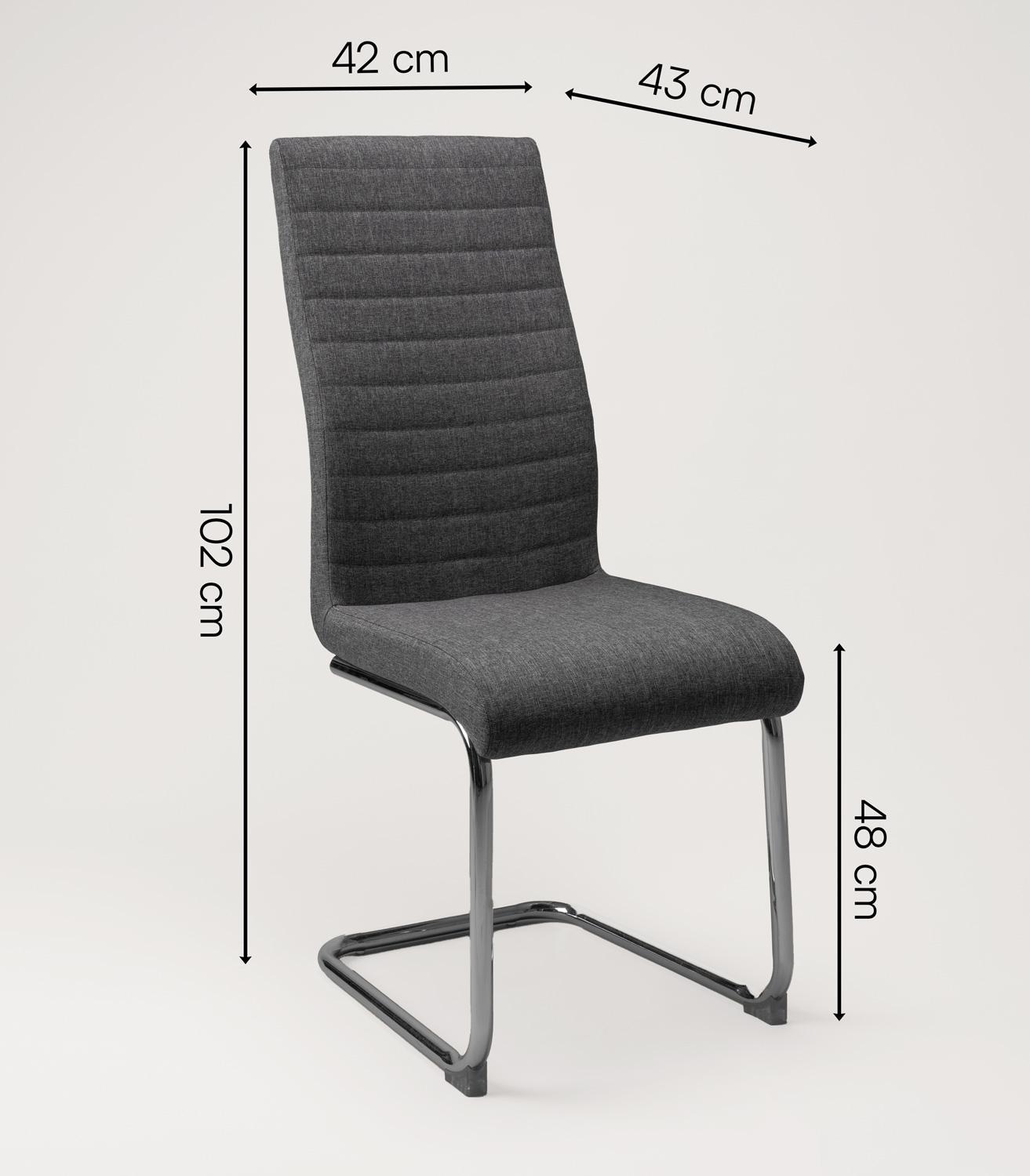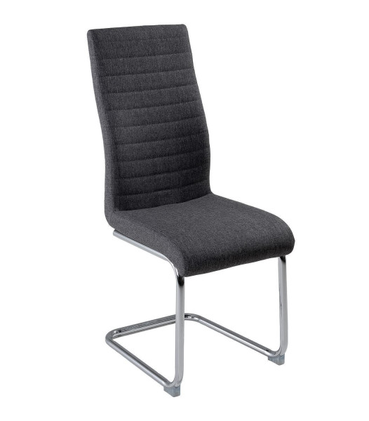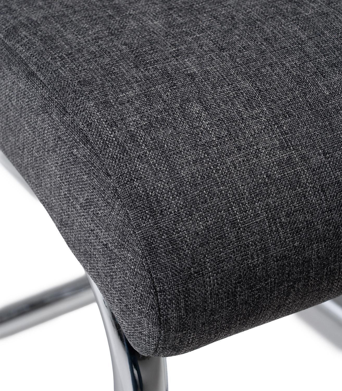 Der Schwingstuhl von Home4You ist in Dunkelgrau mit Silbergrauem Webstoffbezug erhältlich und verfügt über eine attraktive Quersteppung. Sein Gestell besteht aus verchromtem Metall. Die Abmessungen betragen 42 cm in der Breite, 102 cm in der Höhe und 43 cm in der Tiefe. Die Sitzfläche bietet eine Breite von 42 cm, eine Höhe von 48 cm und eine Tiefe von 43 cm. Der Stuhl wird teilmontiert geliefert und hat eine Belastbarkeit von bis zu 120 kg.