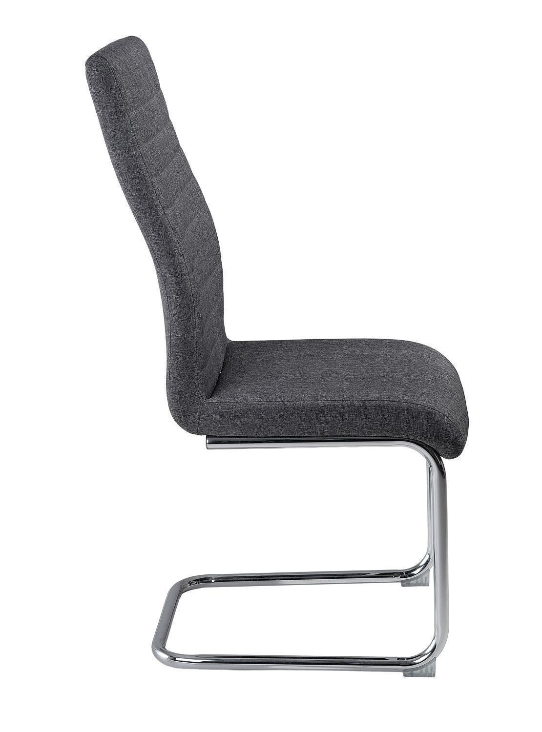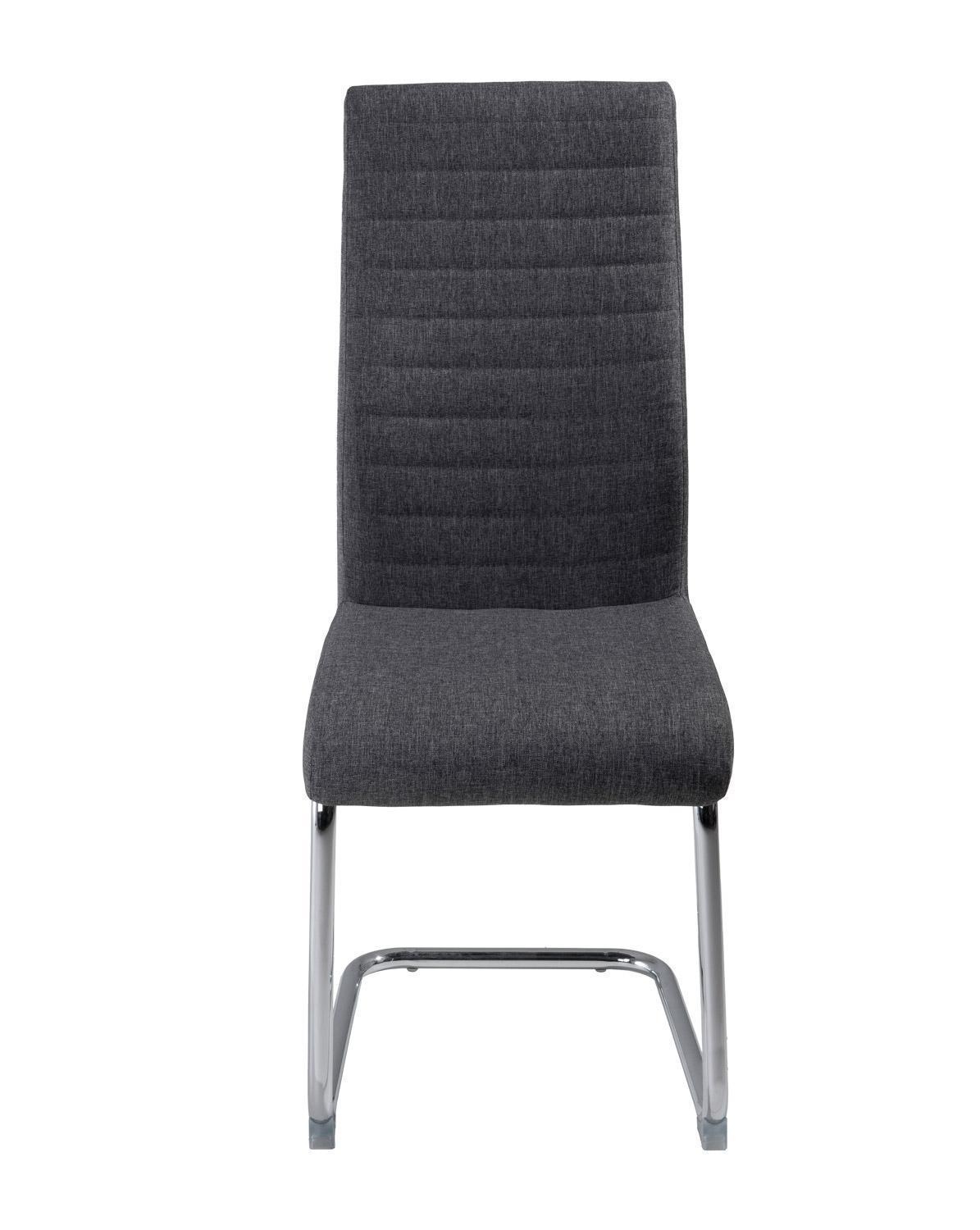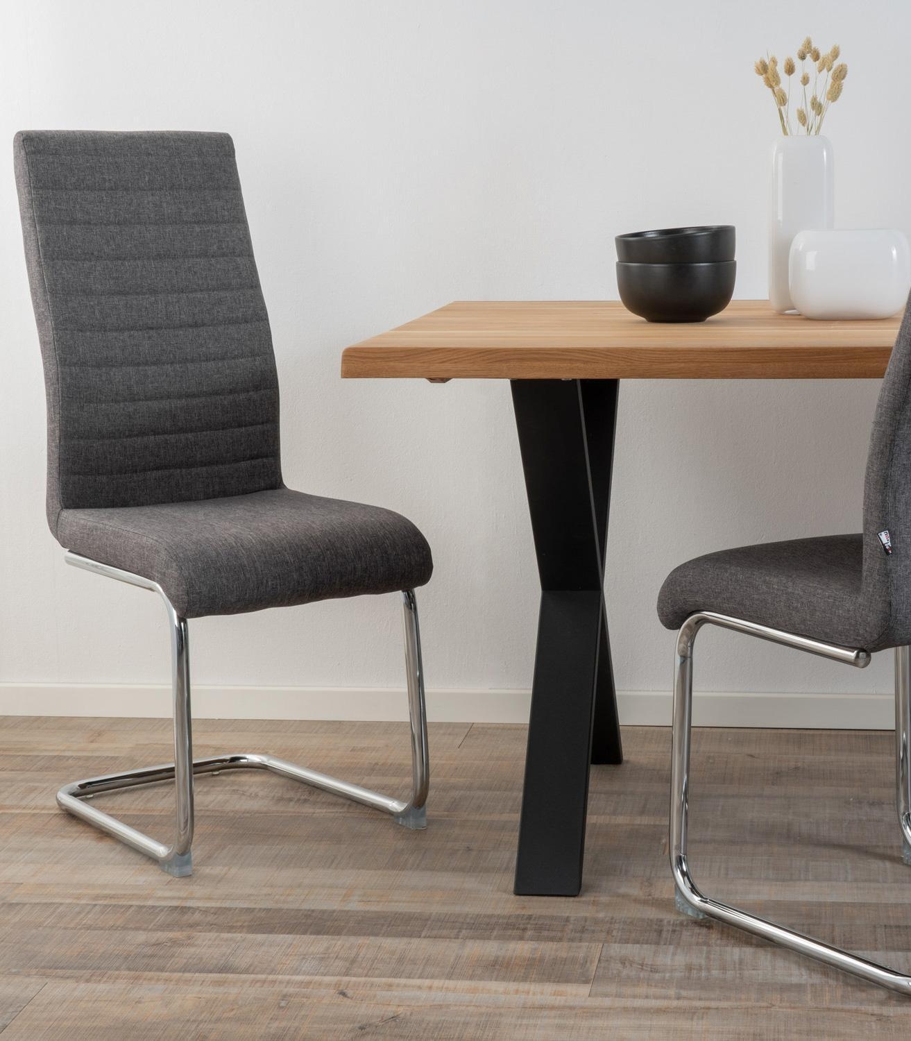 Der Schwingstuhl von Home4You ist in Dunkelgrau mit Silbergrauem Webstoffbezug erhältlich und verfügt über eine attraktive Quersteppung. Sein Gestell besteht aus verchromtem Metall. Die Abmessungen betragen 42 cm in der Breite, 102 cm in der Höhe und 43 cm in der Tiefe. Die Sitzfläche bietet eine Breite von 42 cm, eine Höhe von 48 cm und eine Tiefe von 43 cm. Der Stuhl wird teilmontiert geliefert und hat eine Belastbarkeit von bis zu 120 kg.