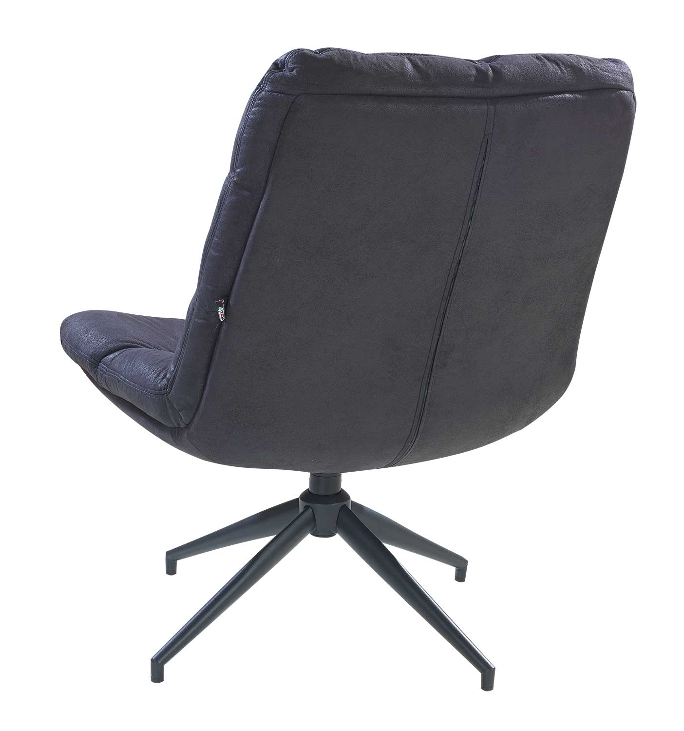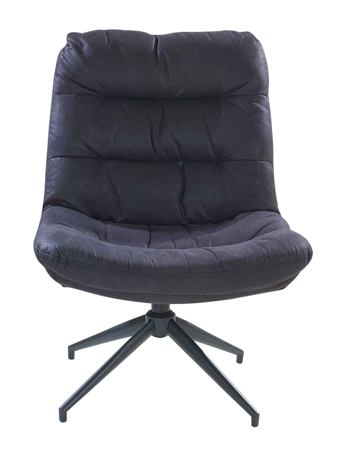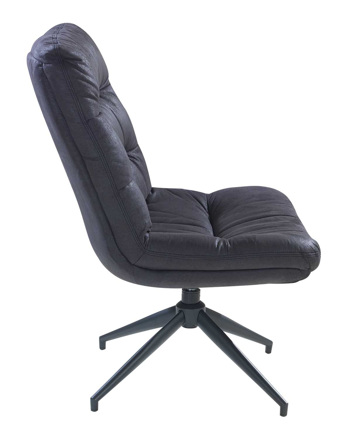 Der Sessel von Home4You ist mit einem Mikrofaserbezug in eleganter schwarzer Farbe ausgestattet und verfügt über ein robustes Metallgestell in mattem Schwarz. Seine bequeme Polsterung sorgt für maximalen Komfort, während die praktische Drehfunktion Flexibilität bietet.